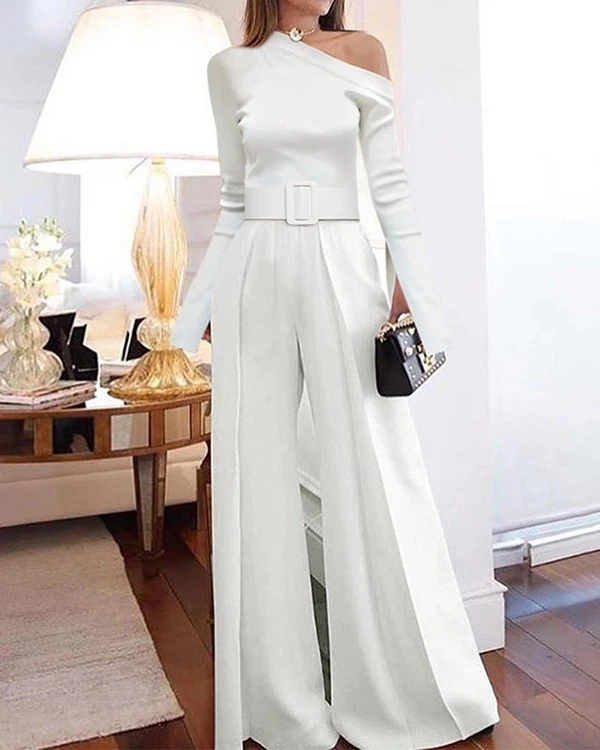 Classy Long Sleeve One Shoulder Jumpsuits With Belt