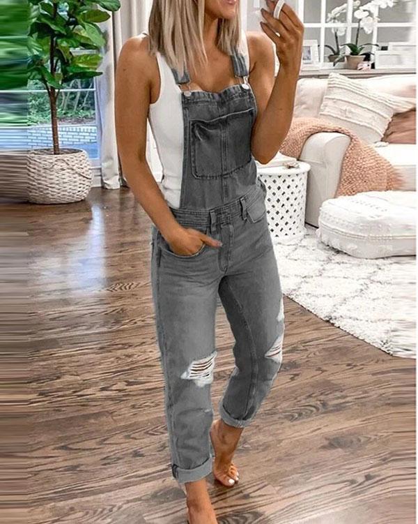 2020 Women's Casual Holiday Ripped Denim Jumpsuit
