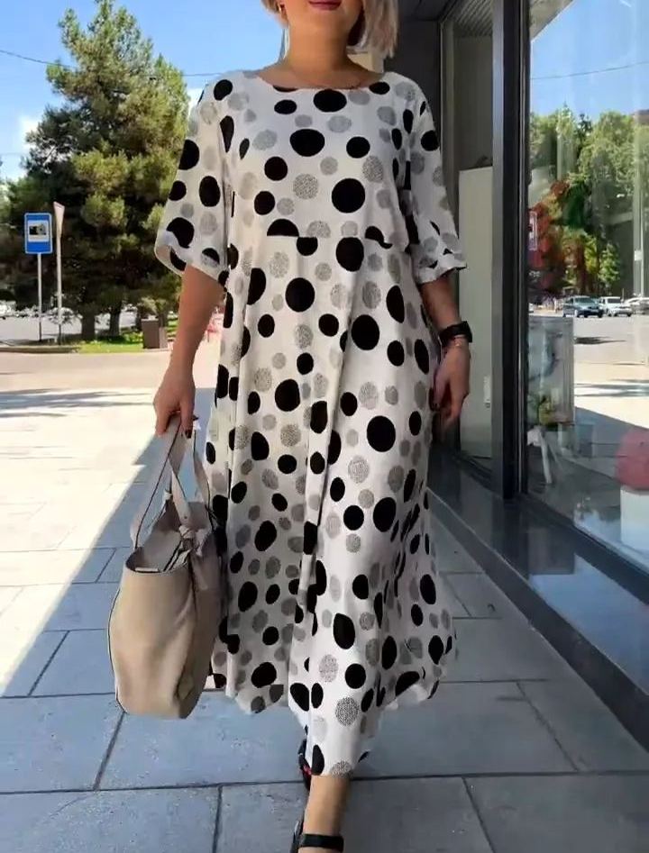 Polka Dot Print Short Sleeve Long Dress