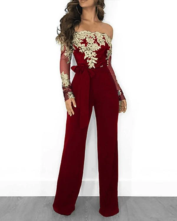 Women's Kentucky Derby Black Wine Gold Wide Leg Jumpsuit