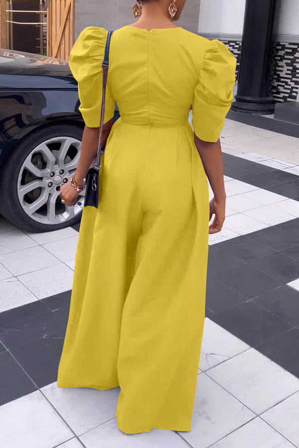 Pleated V Neck Woven Loose Wide Leg Jumpsuit