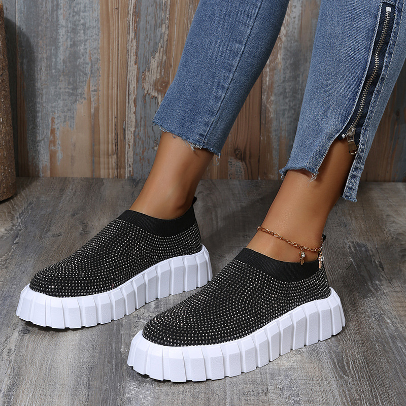 Large Size Thick Bottom Rhinestone Mesh Breathable Casual Sneakers