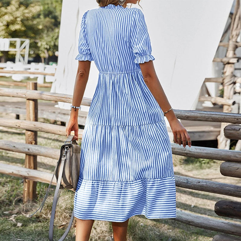 V-neck Dress with A Striped Print