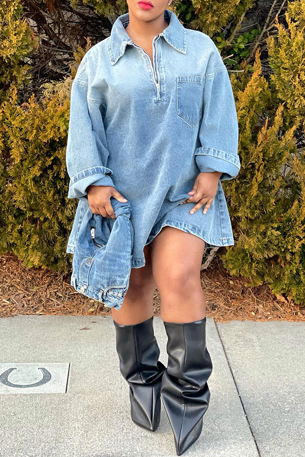 Casual Gradient Denim Mini Dress
