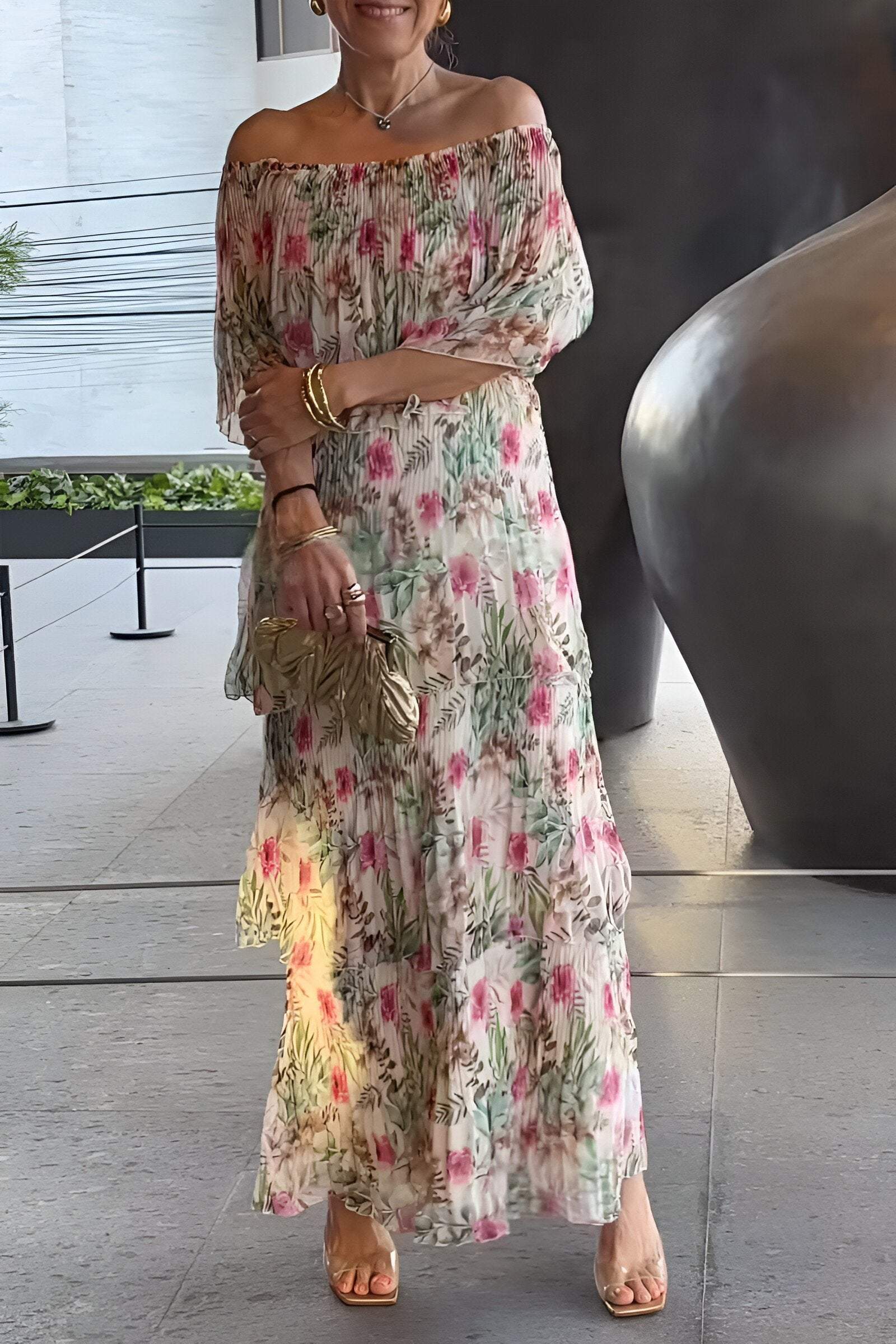 Elegant chiffon cake print maxi dress