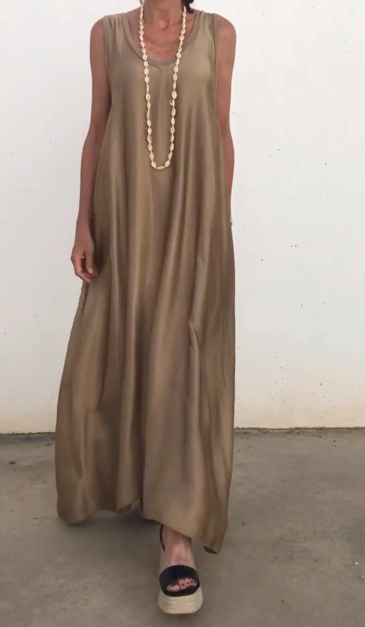 Elegant Solid Color Cotton Linen Sleeveless Long Dress