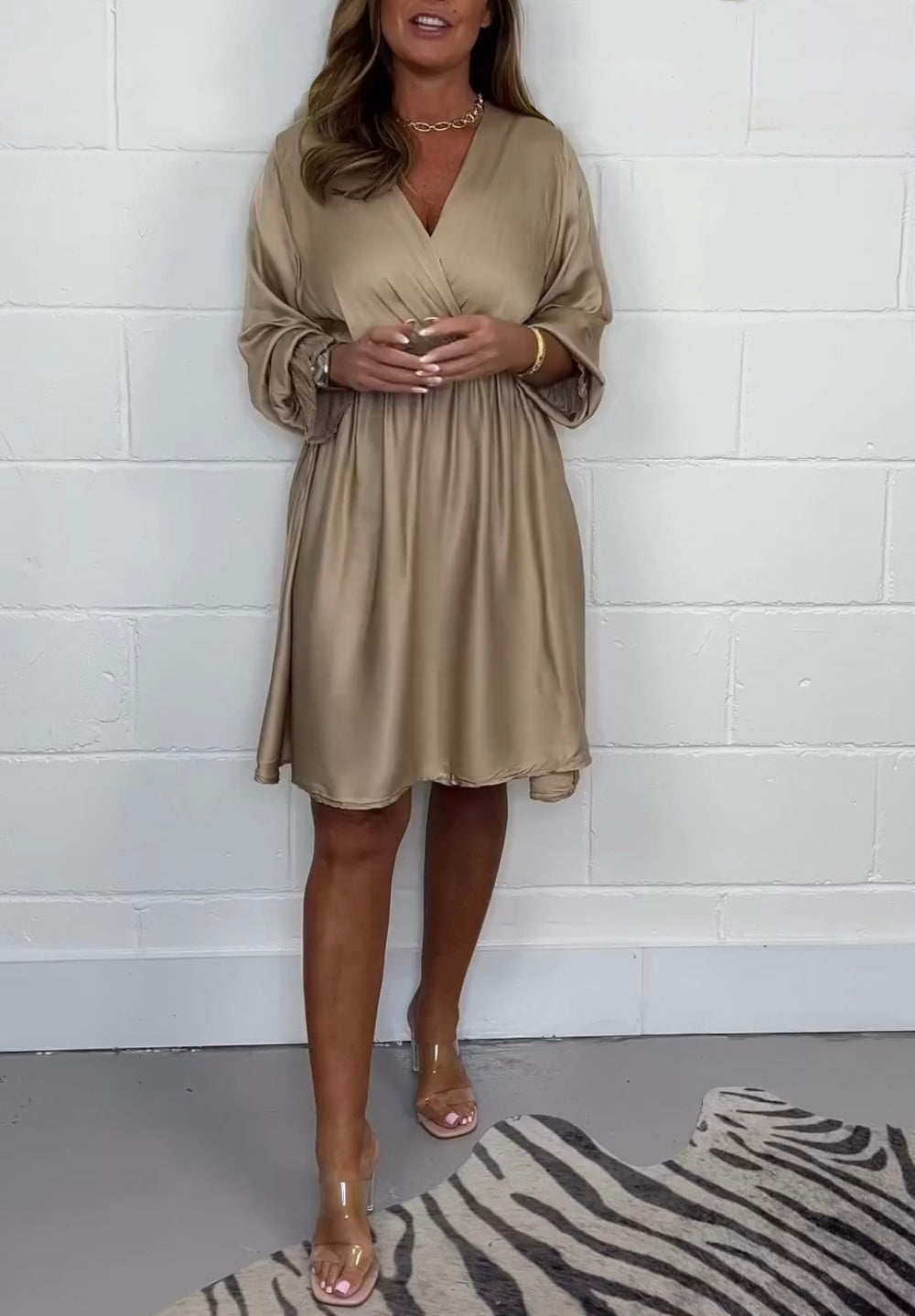 Women's Casual Solid Color Satin V Neck Dress