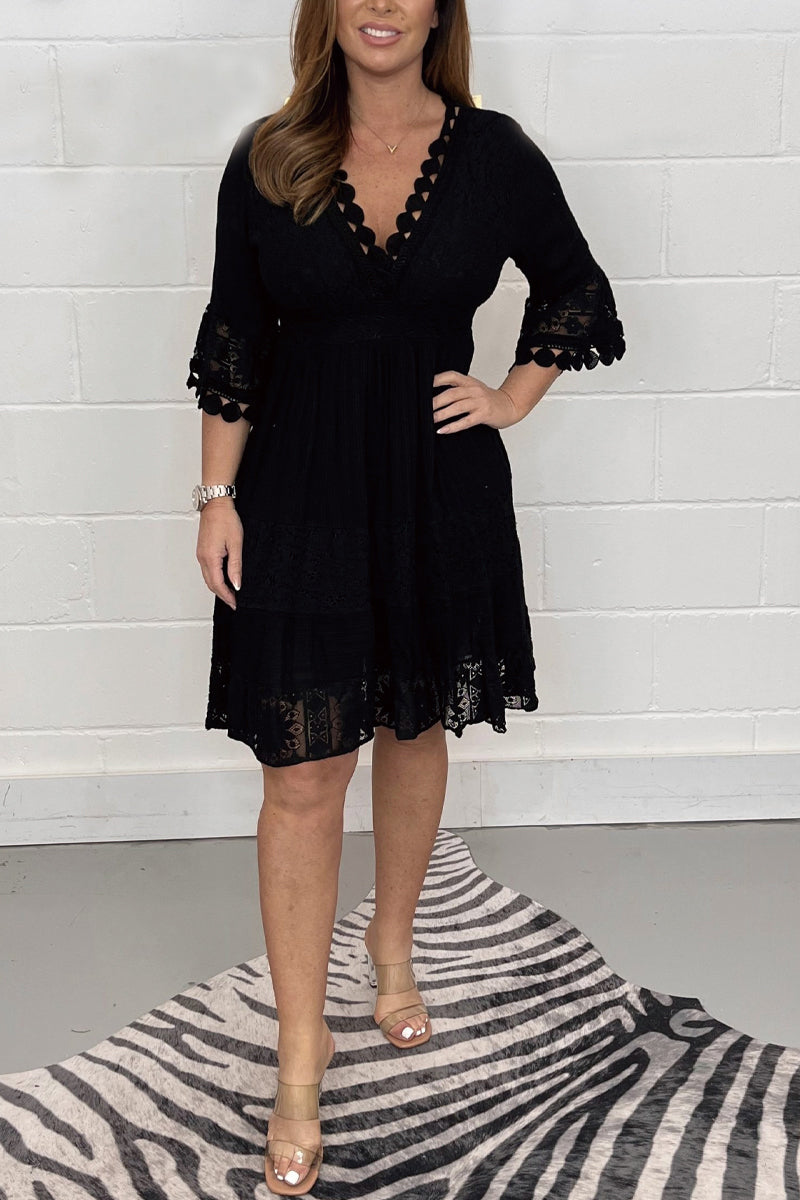 V-neck lace cotton dress