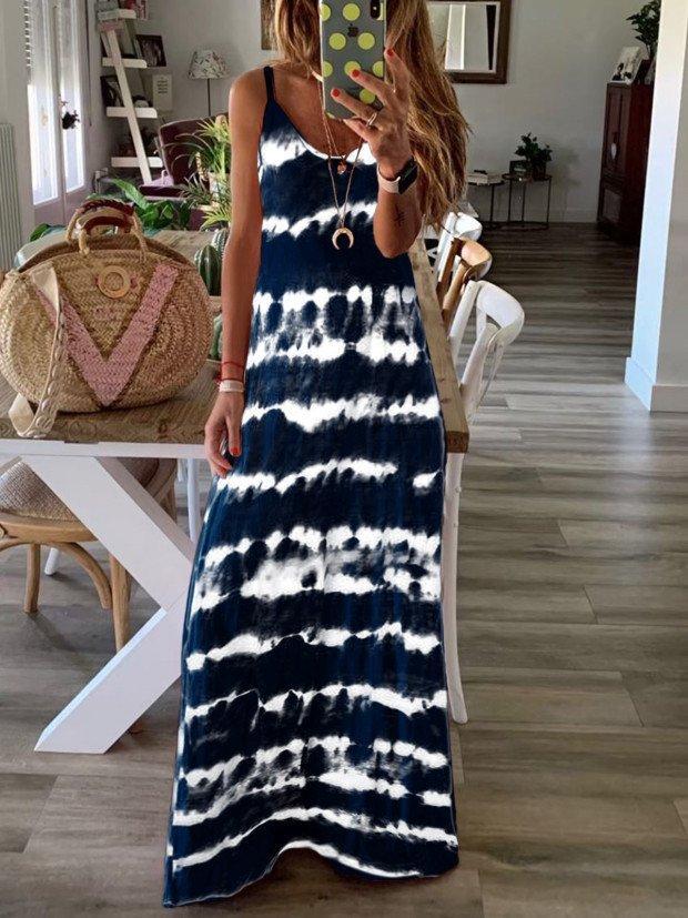 Dip-Dyed Crew Neck Sleeveless Dresses