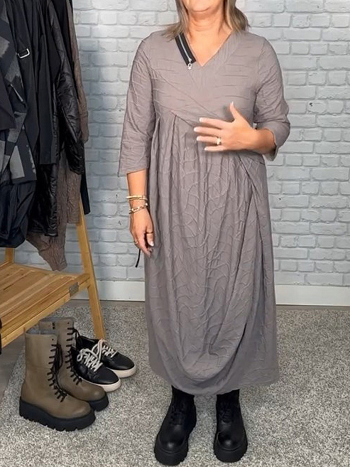 Women's Casual Solid Color V Neck Slit Dress