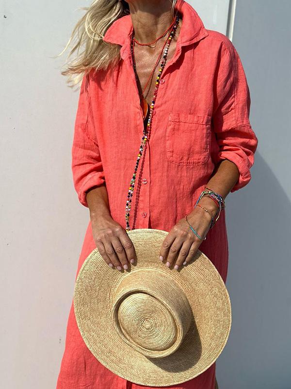 casual women's shirt cotton and linen dress