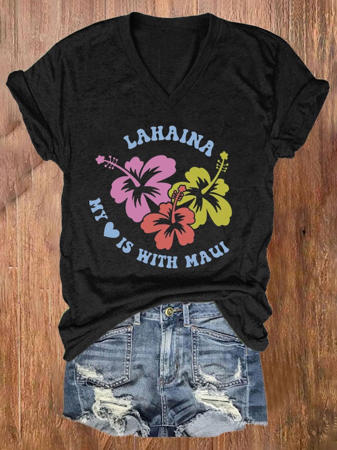 🔥BUY 3 GET 15% OFF🔥Women's "Stronger Together Maui 2023" Print V-Neck T-Shirt