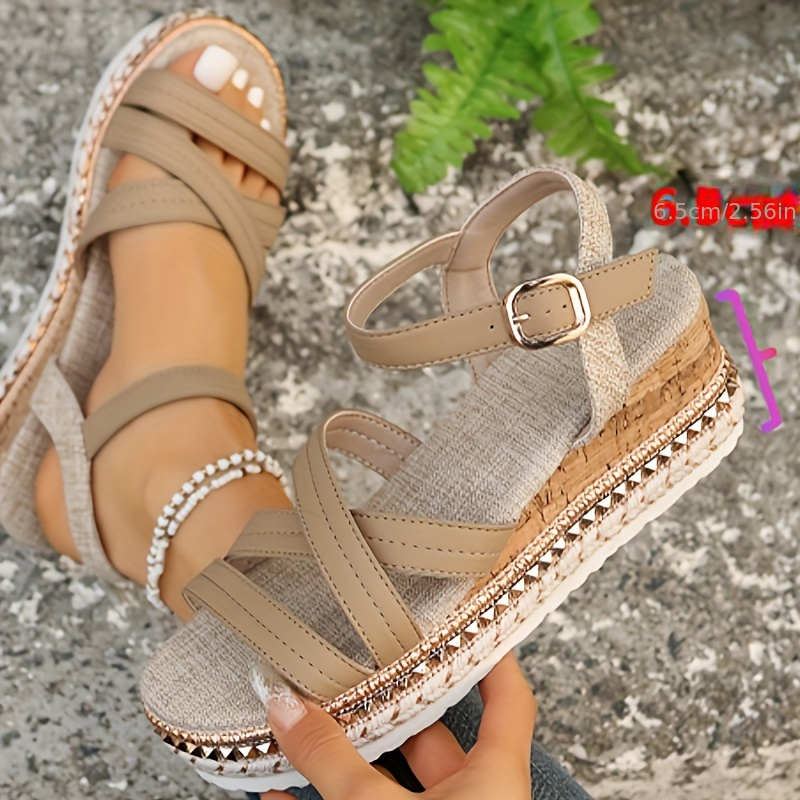 Women's Ankle Strap Platform Sandals, Studded Sole Open Toe Wedge Shoes, All-Match Outdoor Vacation Summer Shoes