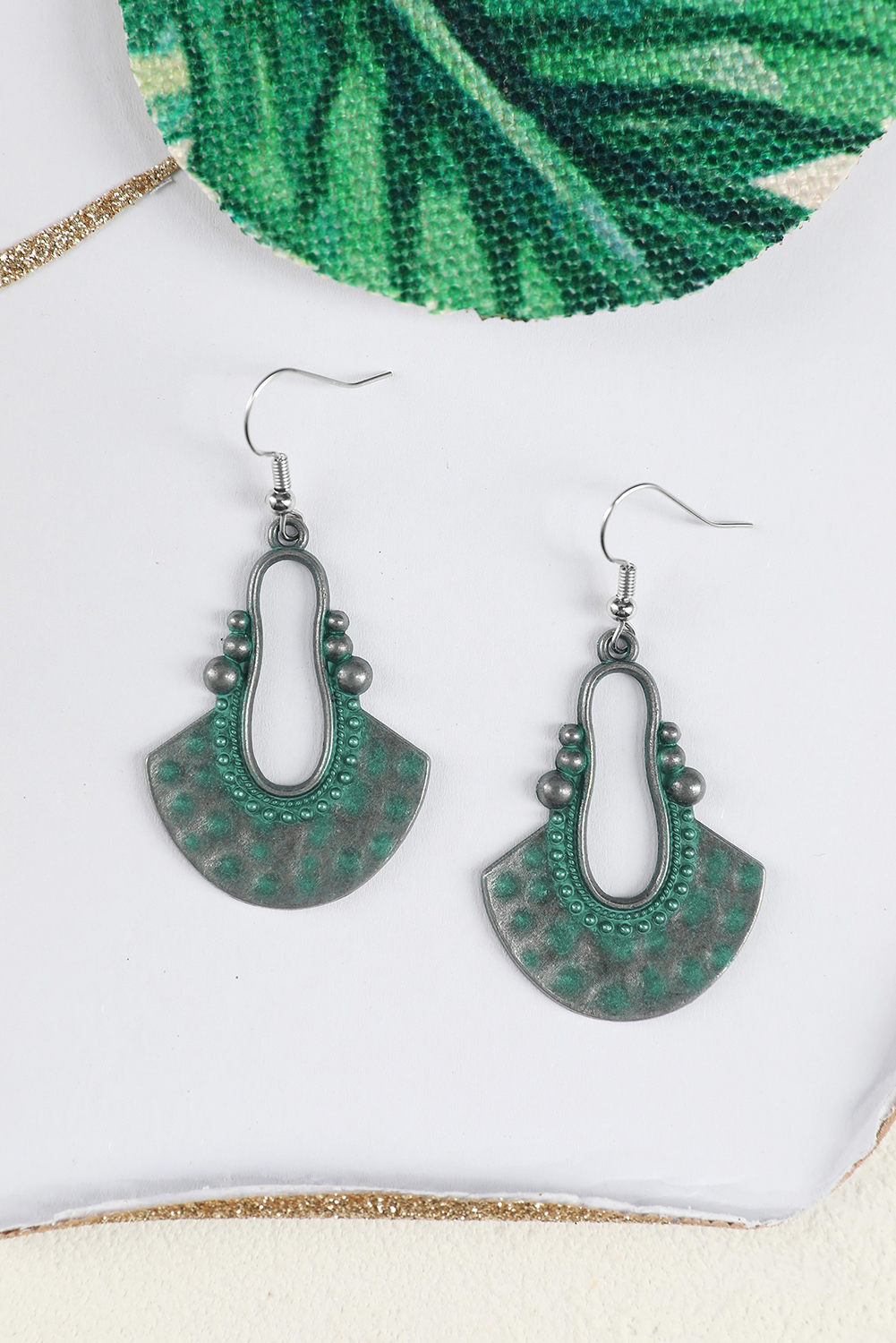 Silver Geometric Fan Shape Antiqued Dangle Earrings