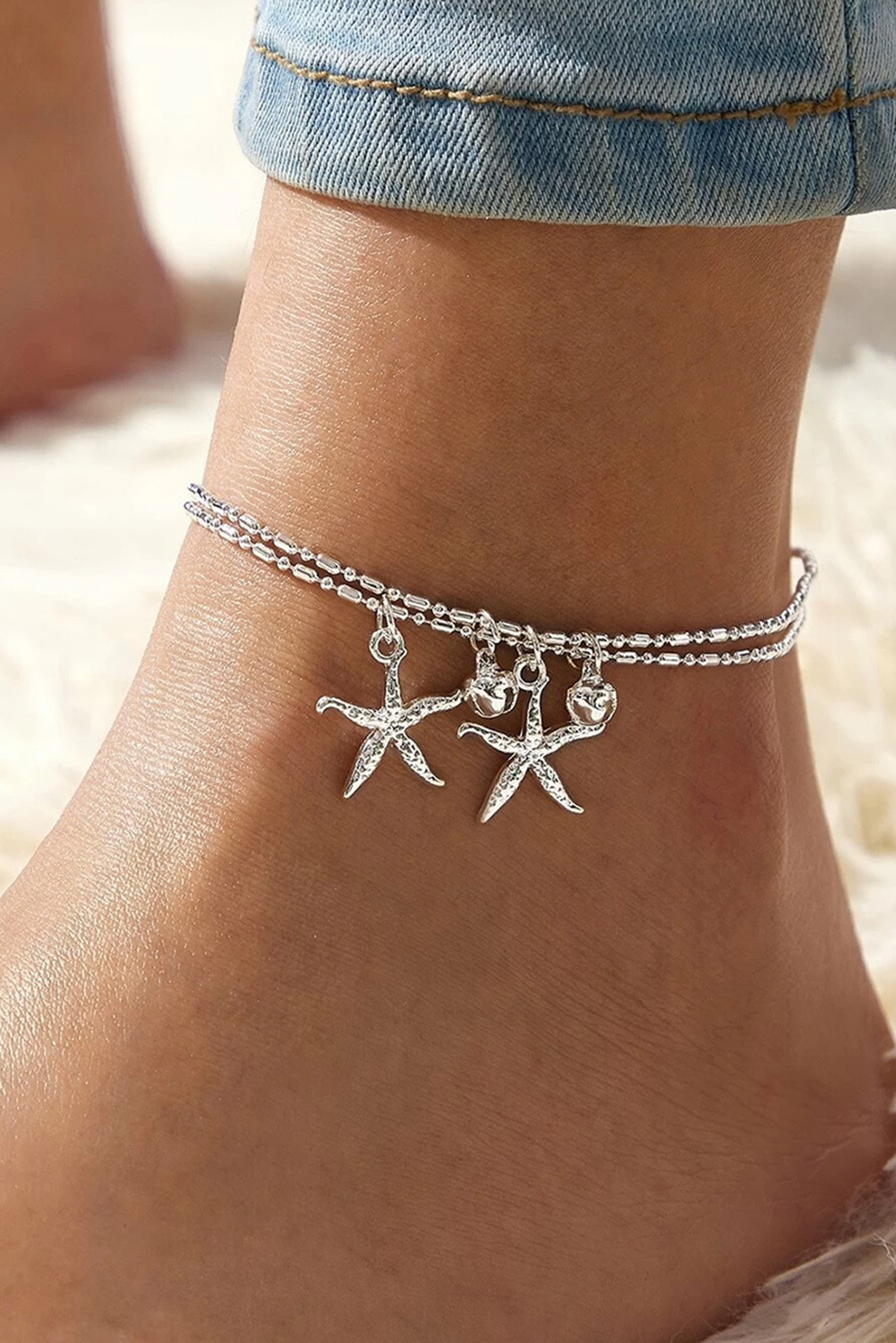 White 7pcs Starfish Seashell Beaded Bracelet Set