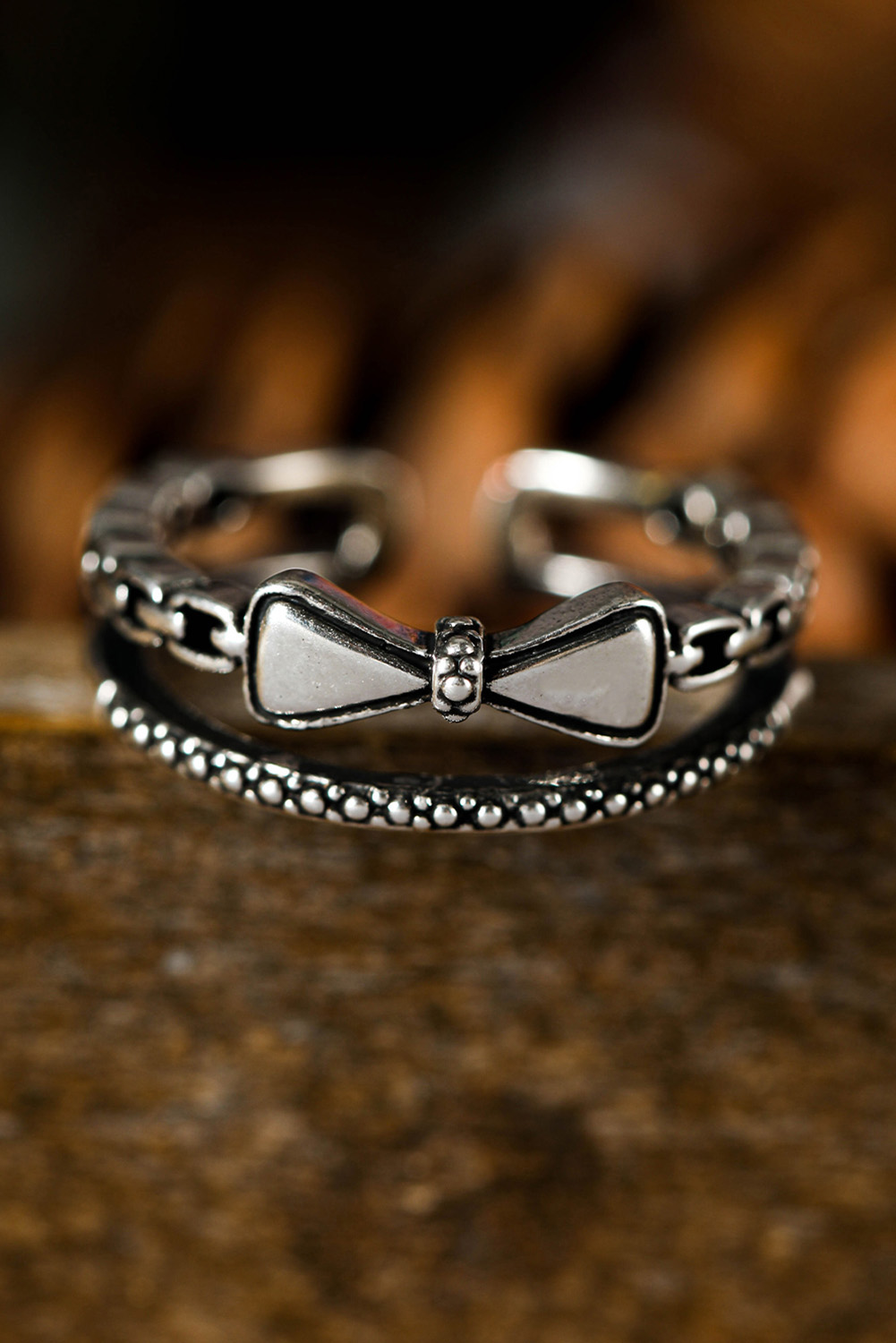 Silvery Bownot Vintage Alloy Double Tier Ring