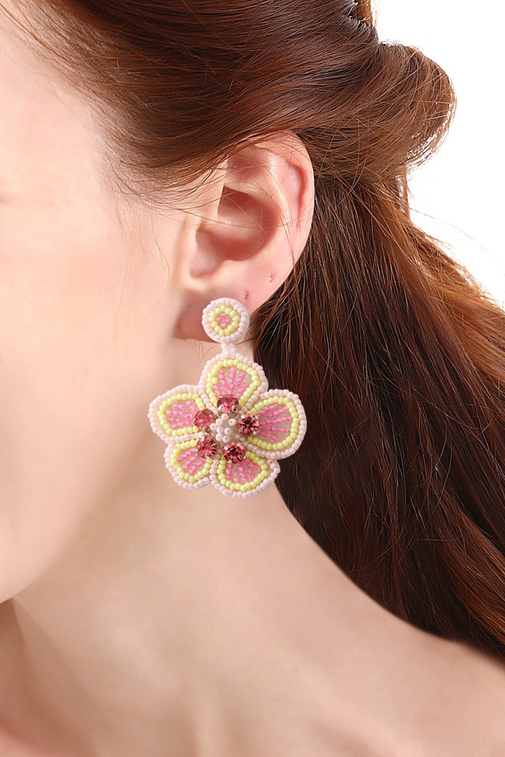 Apricot Pink Boho Beaded Floral Gem Earrings