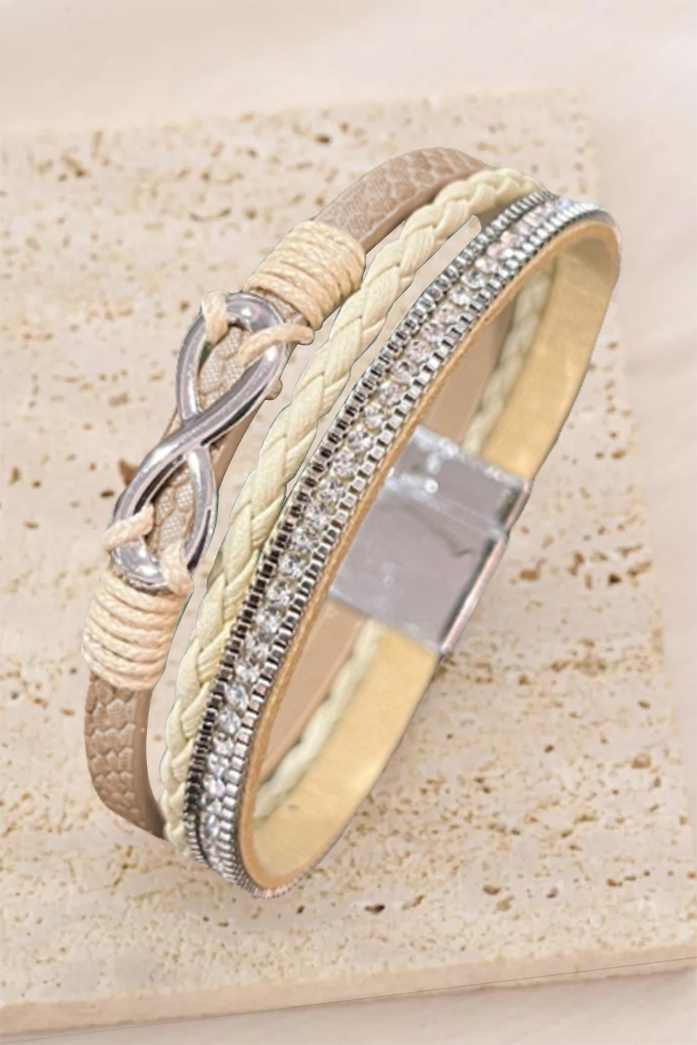 Apricot Infinity Rhinestone Magnetic Buckle Bracelet