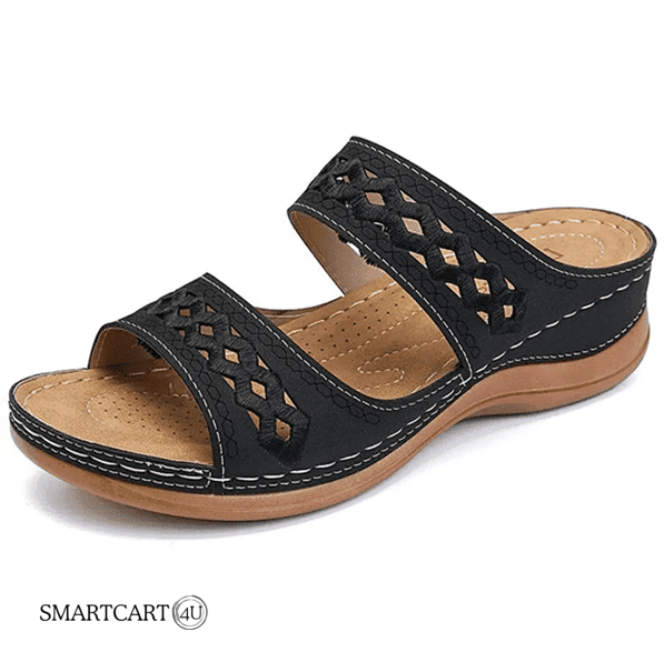 Simply, slip them on and snug your feet in place around the toe clasp for enhanced support.