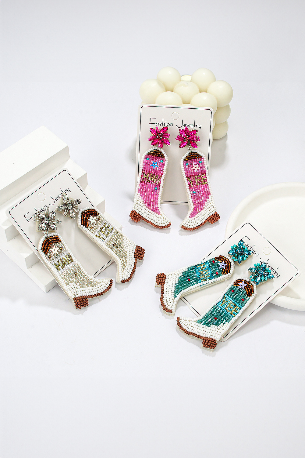 Beige Cowboy Boots Rice Bead Dangle Earrings
