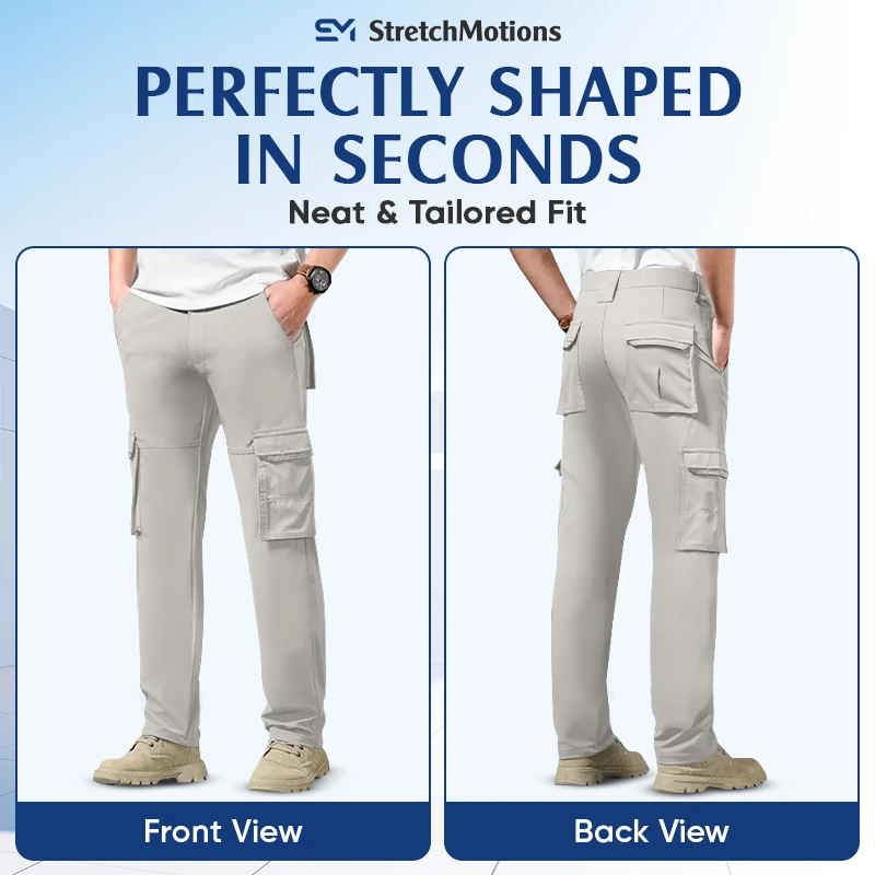 Cargos with a Perfect Fit and no Bulk. StretchMotions come with a sleek, streamlined cut and slim pockets, offering a polished, sharp look that keeps you looking put-together all day long.