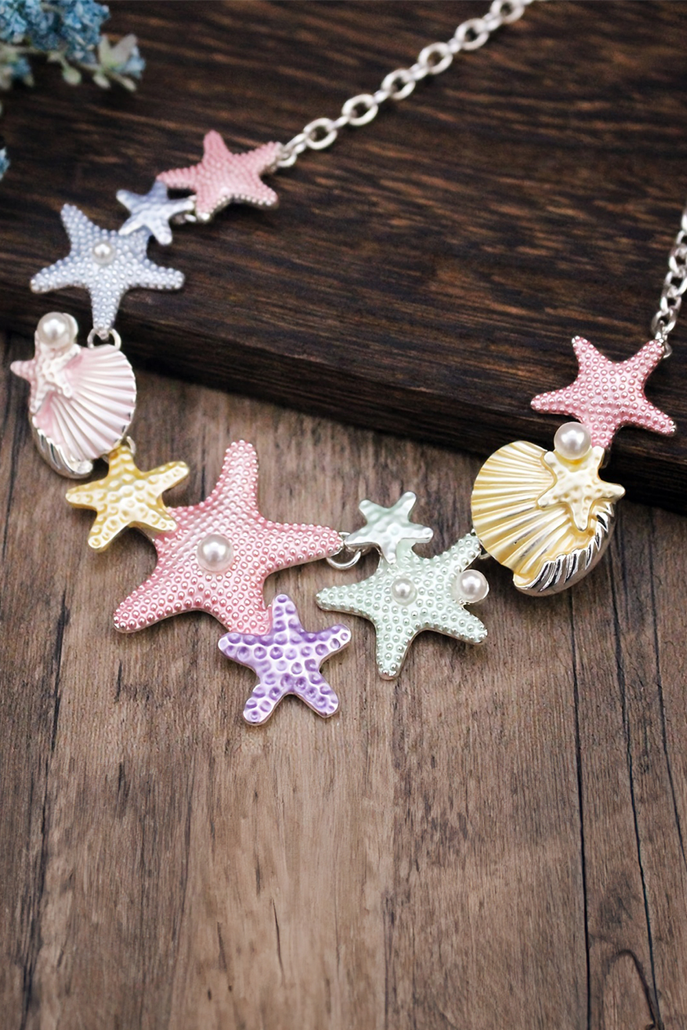 Gold Starfish Seashell Pearl Adjustable Chain Necklace