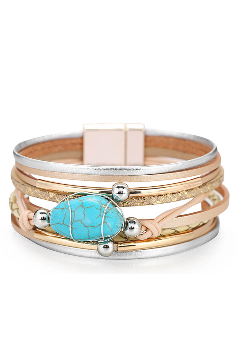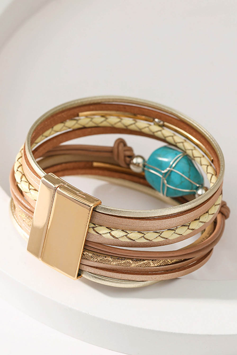 Khaki Multi-layer Leather Turquoise Beaded Bracelet