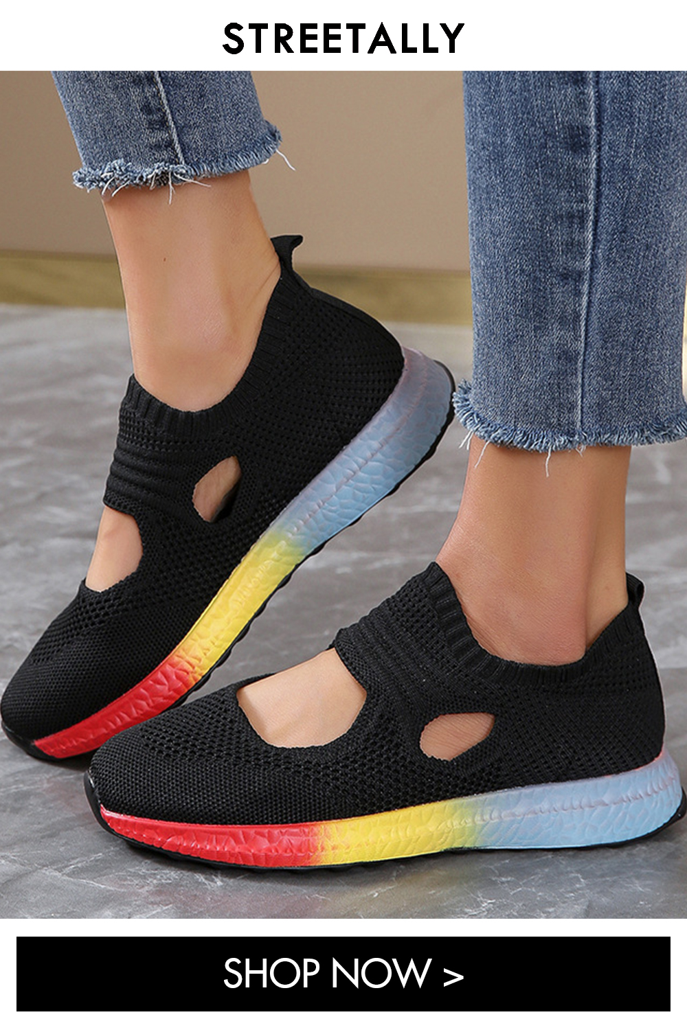 New Large Size Casual Hollow Out Rainbow Bottom Fashion Low Heel Sneakers