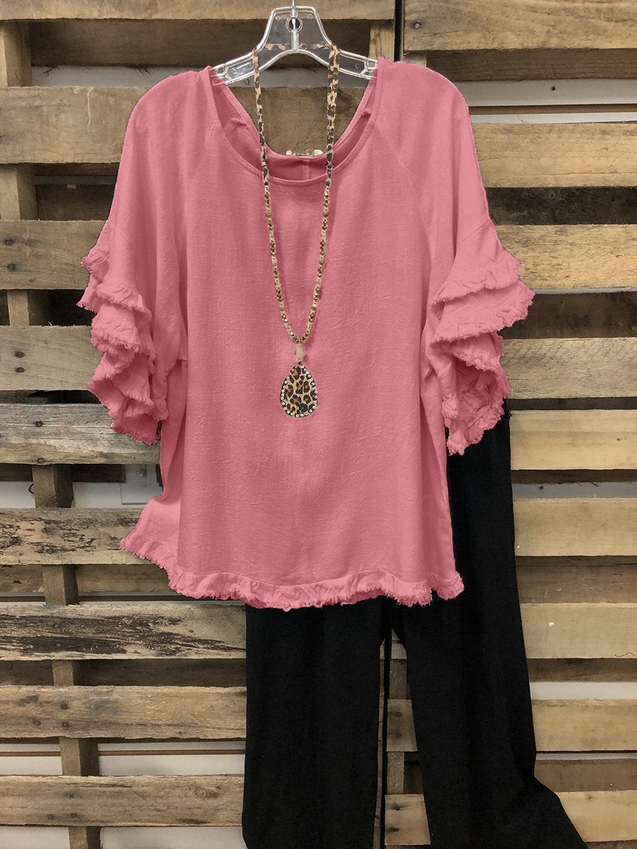 Retro Layered Brushed Round Neck Top
