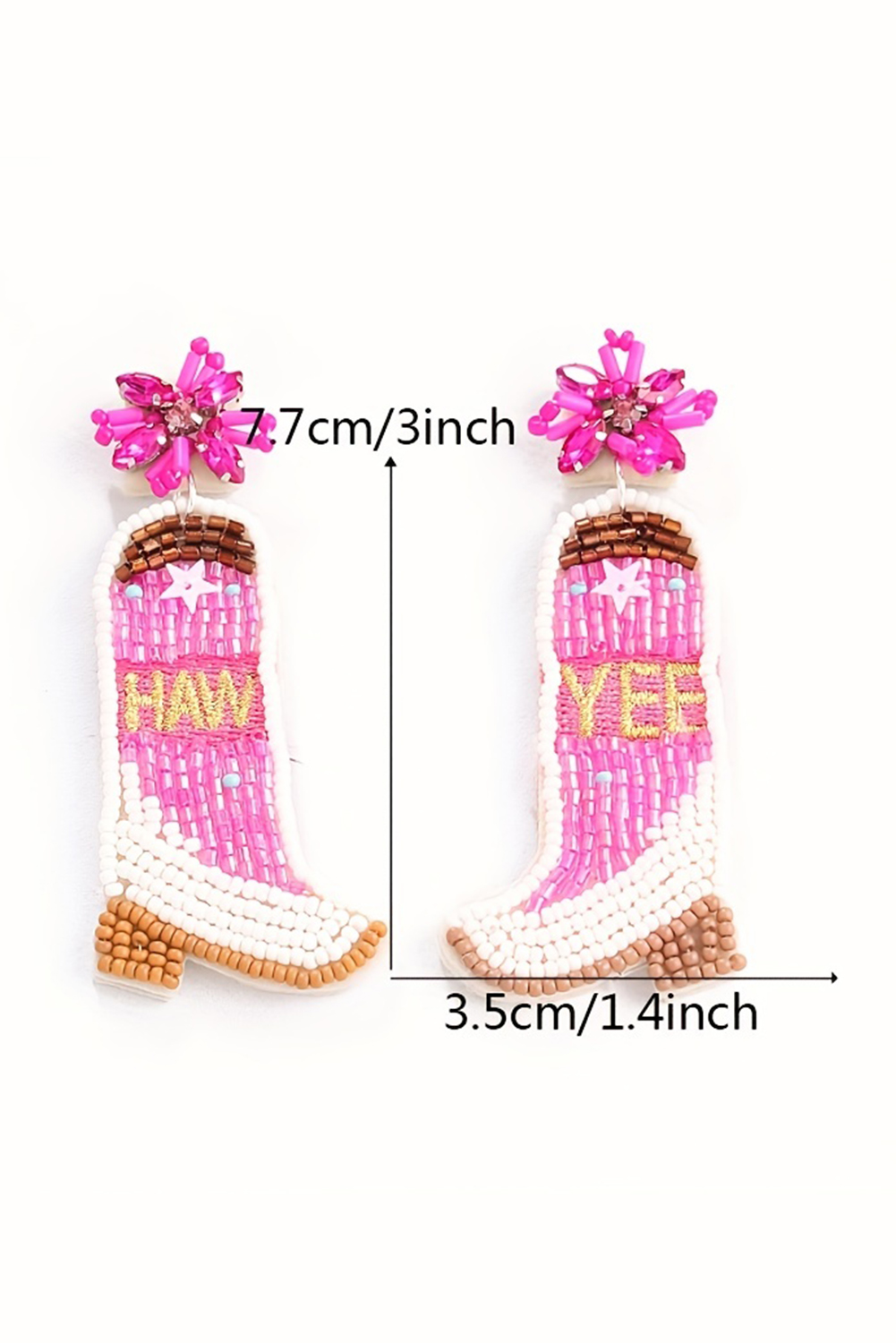 Rose Red Cowboy Boots Rice Bead Dangle Earrings
