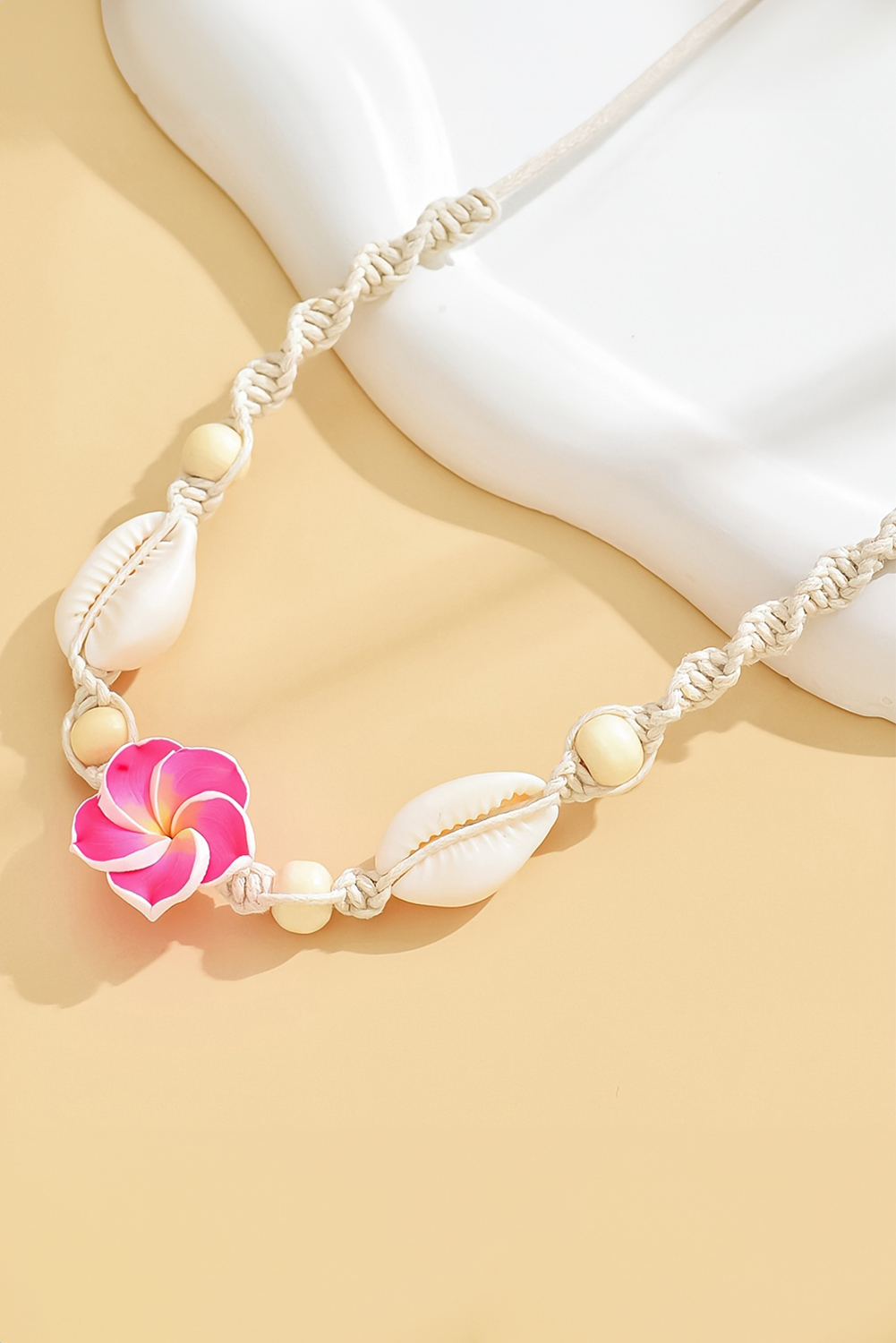 Rose Red Flower Seashell Braided Choker Necklace