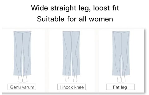 The pleated design well conceals fat on the leg, making your leg look slim and slender. Wide straight leg, lost fit Suitable for all women.