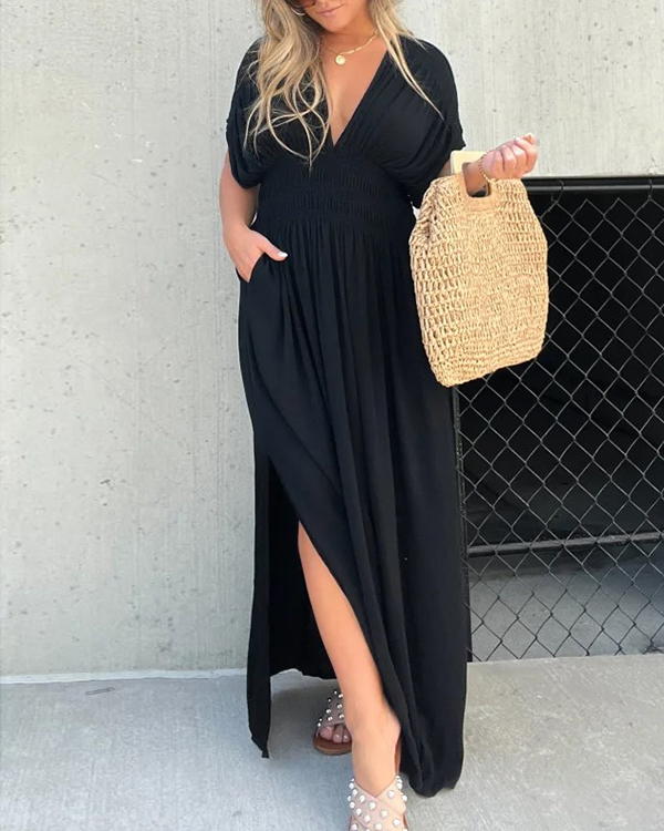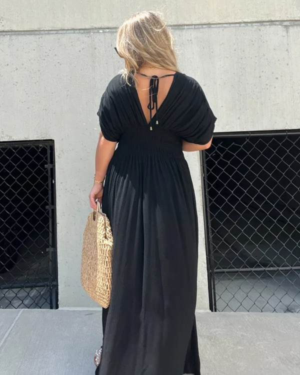 🔥49% Off Last Sale🔥-Women's Solid Slit V-Neck Effortless Maxi Long Dress