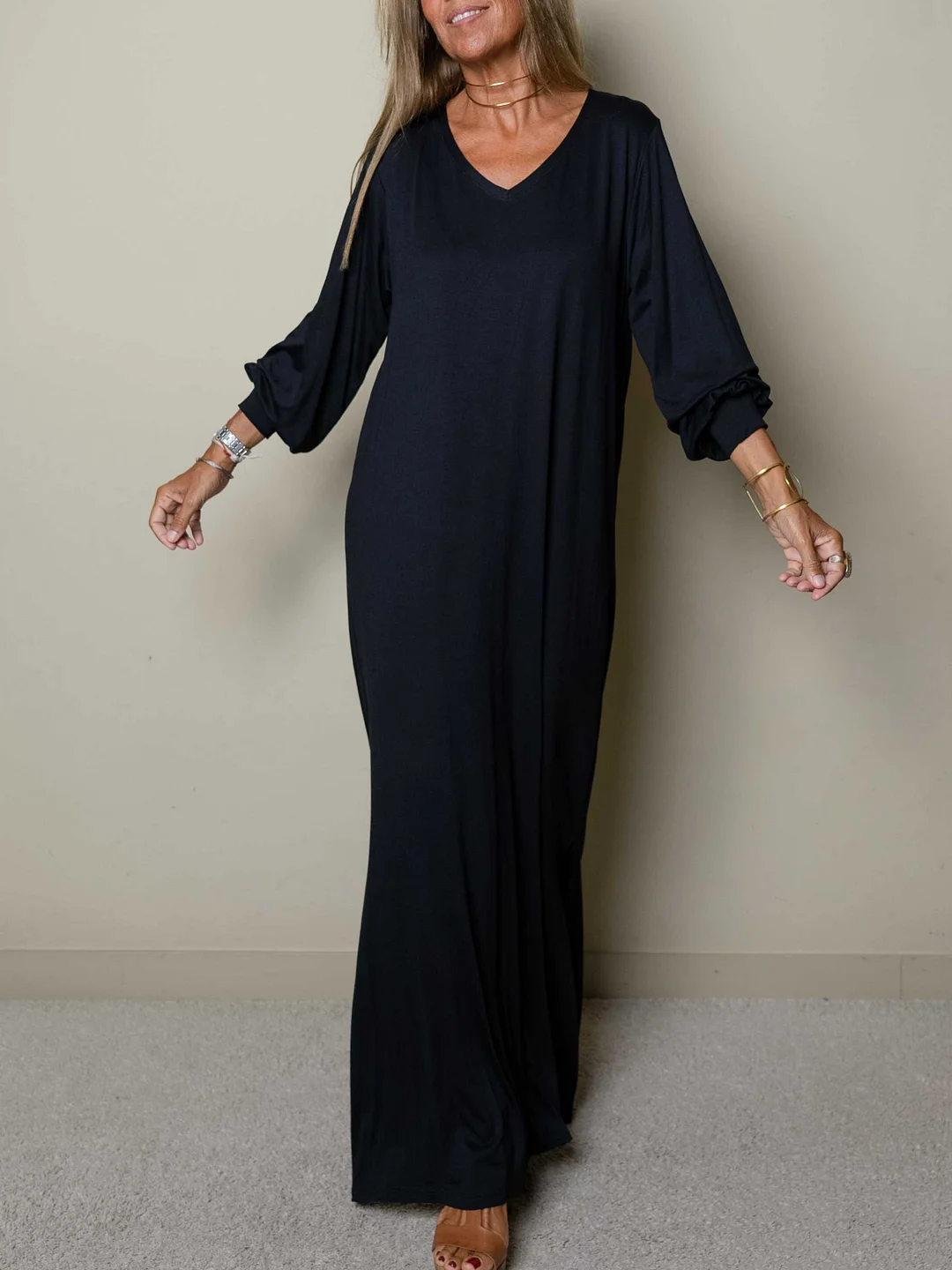 Women Casual Round Neck Short Sleeve Loose Long Dress