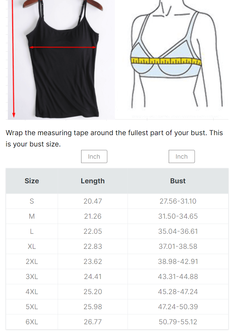 Package includes: 1 x Cami Bra Tank with Built-In Bra