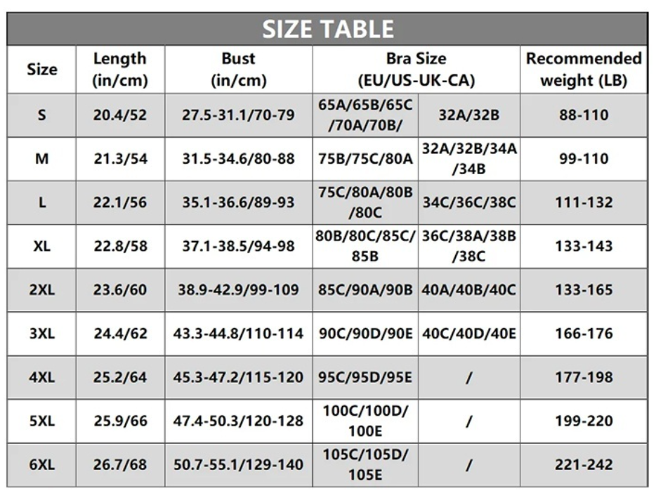 Size: S / M / L / XL / 2XL / 3XL / 4XL / 5XL / 6XL