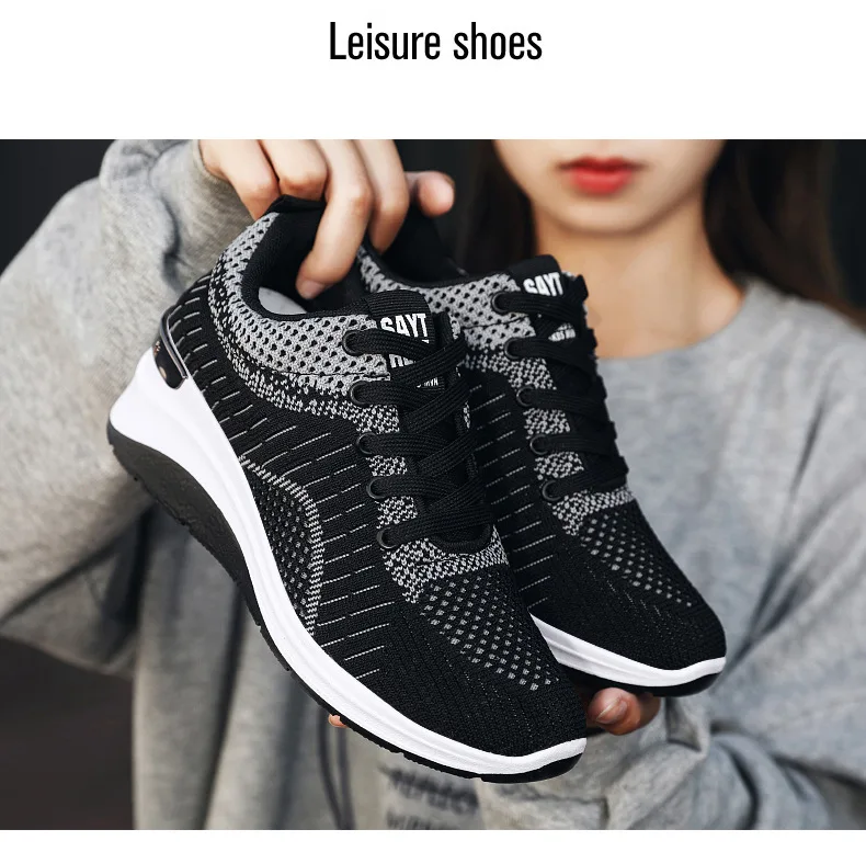 Fashion Women Breathable Running Shoes Thick Sole Sneakers