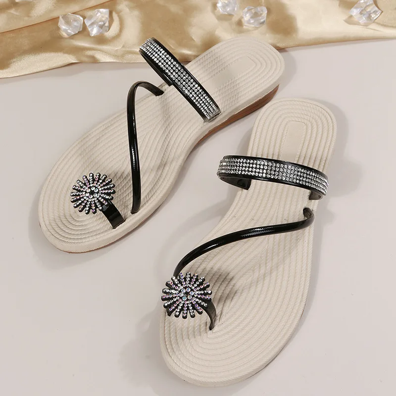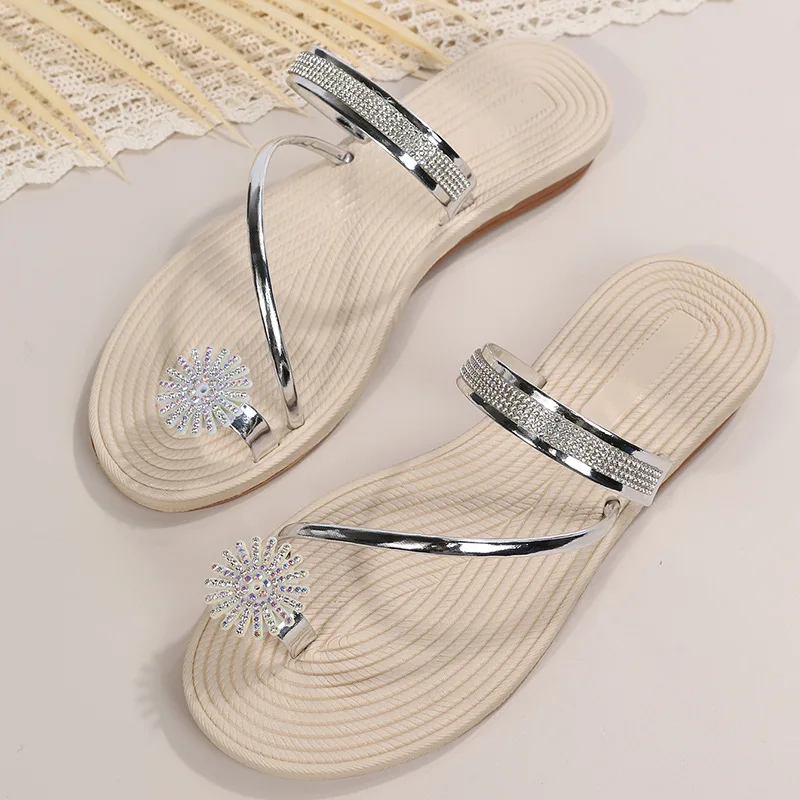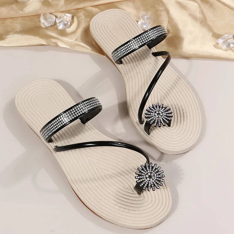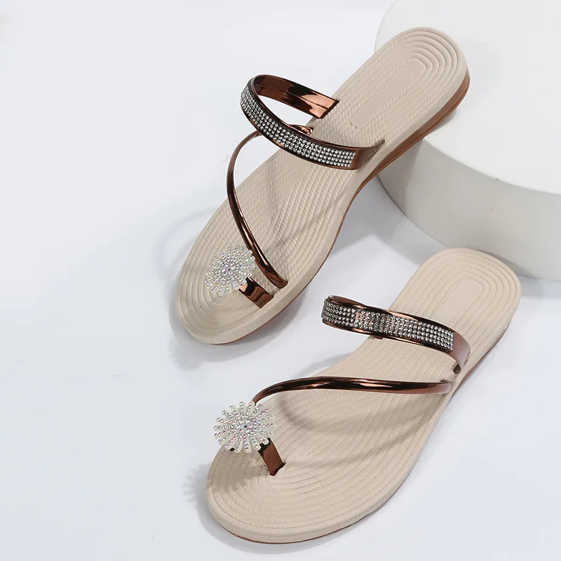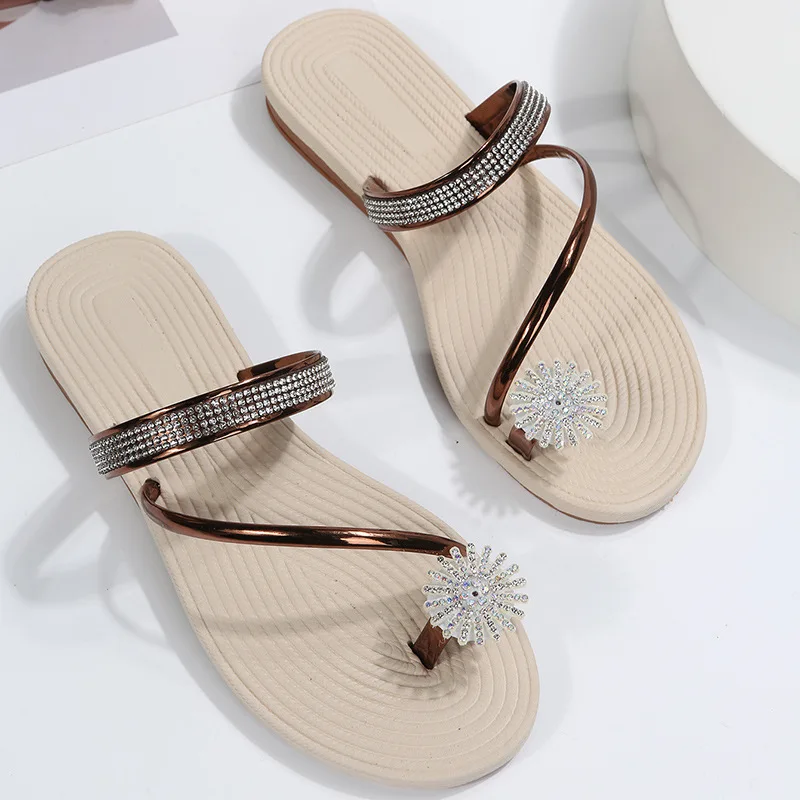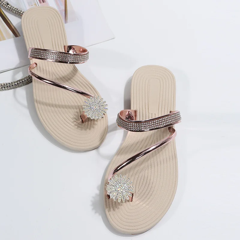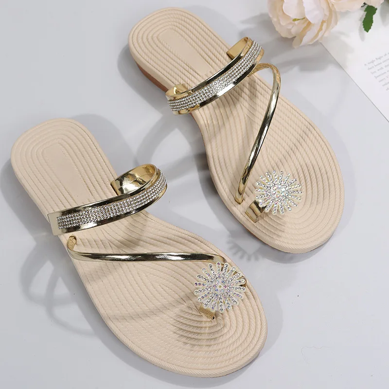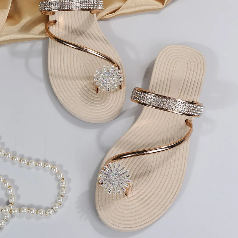 Gold Rhinestone Sparkle Fashion Beach Dress Flat Sandals