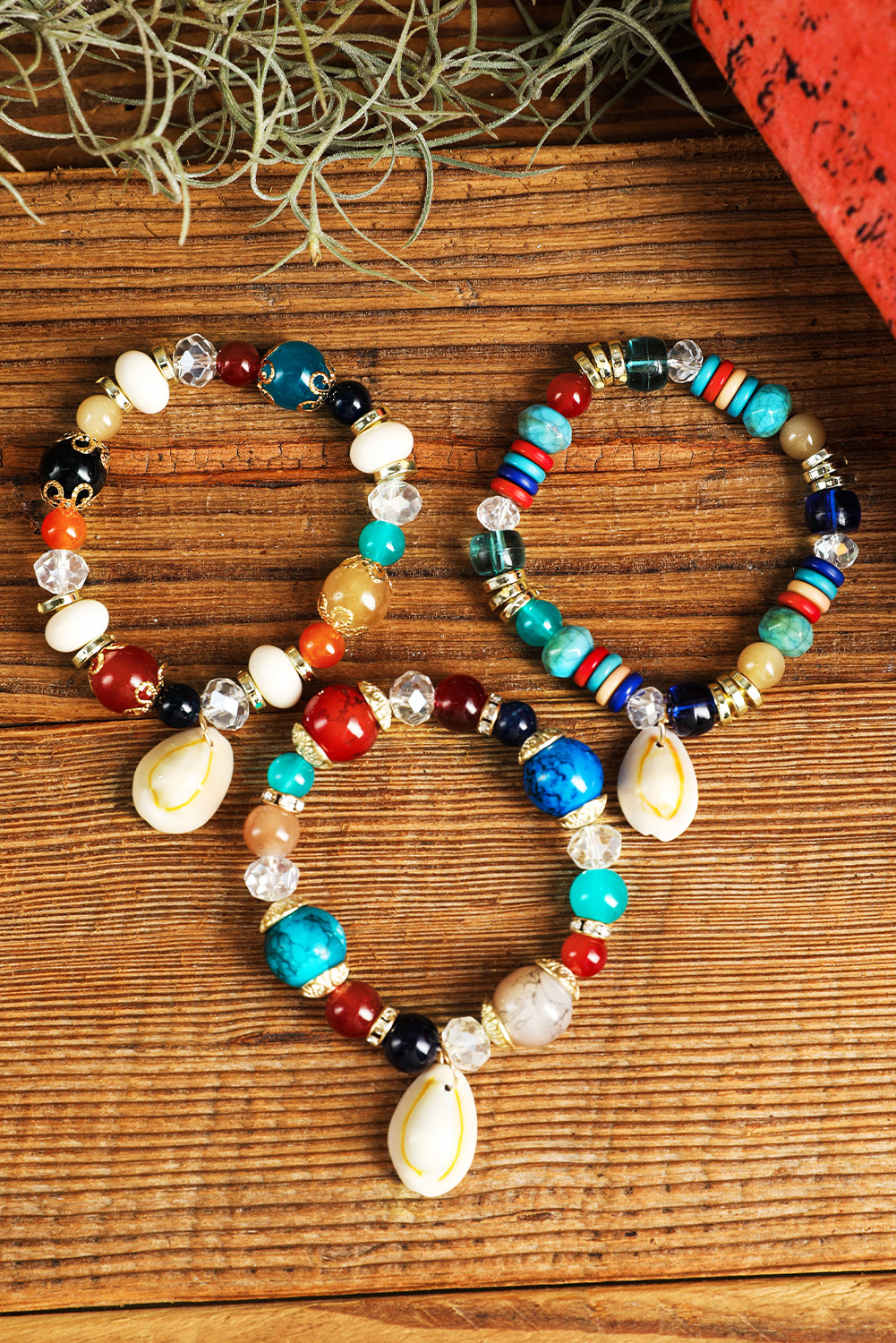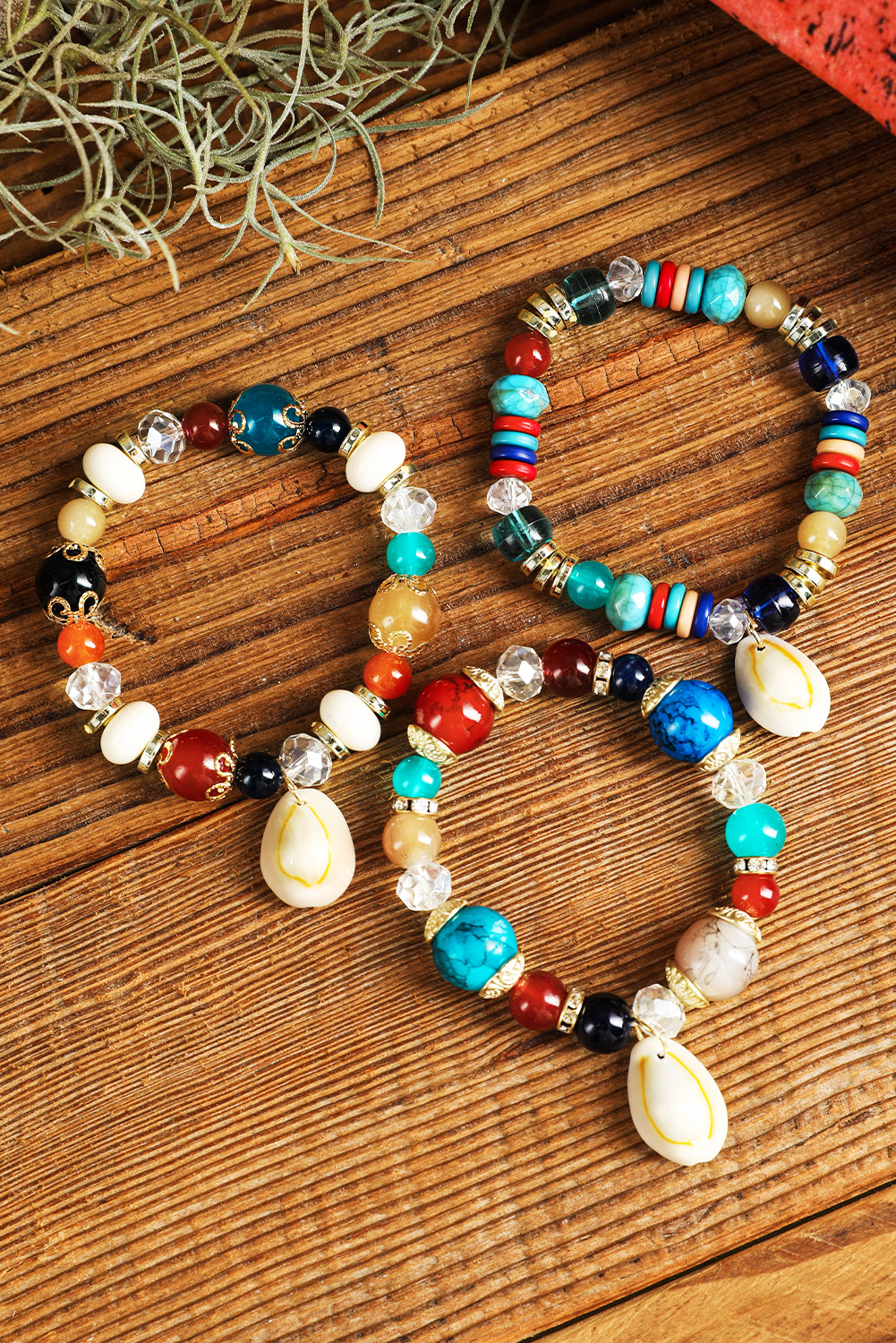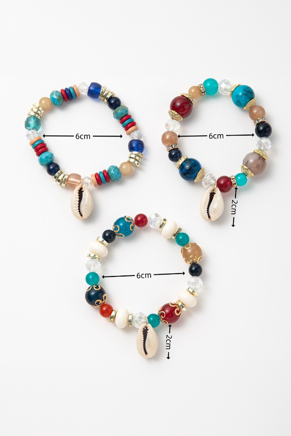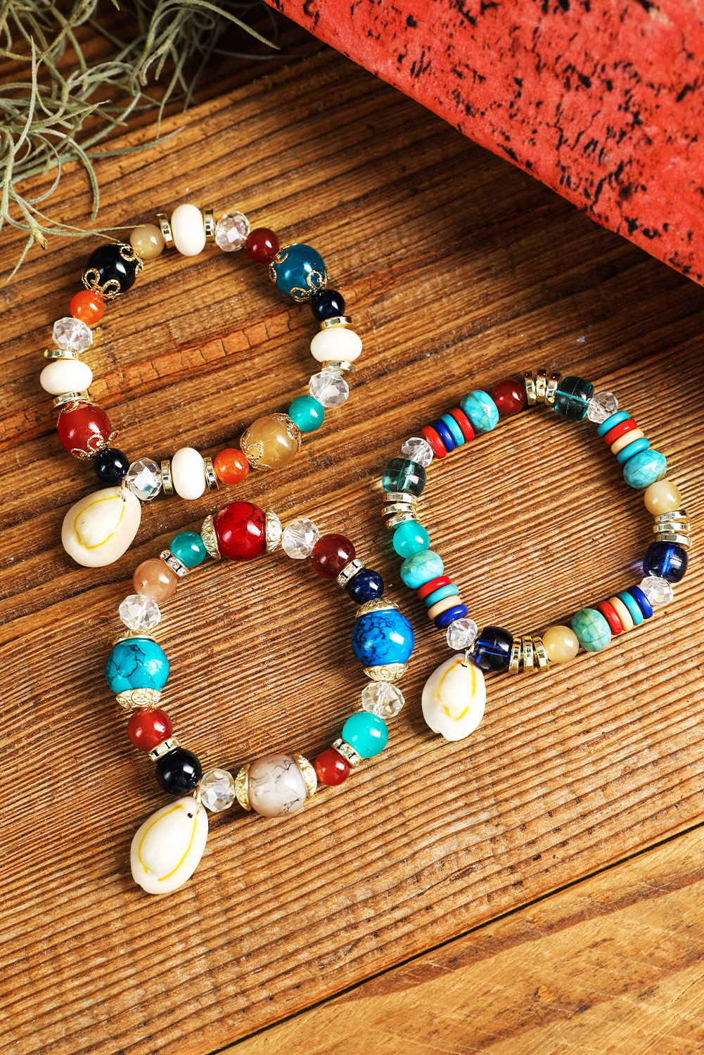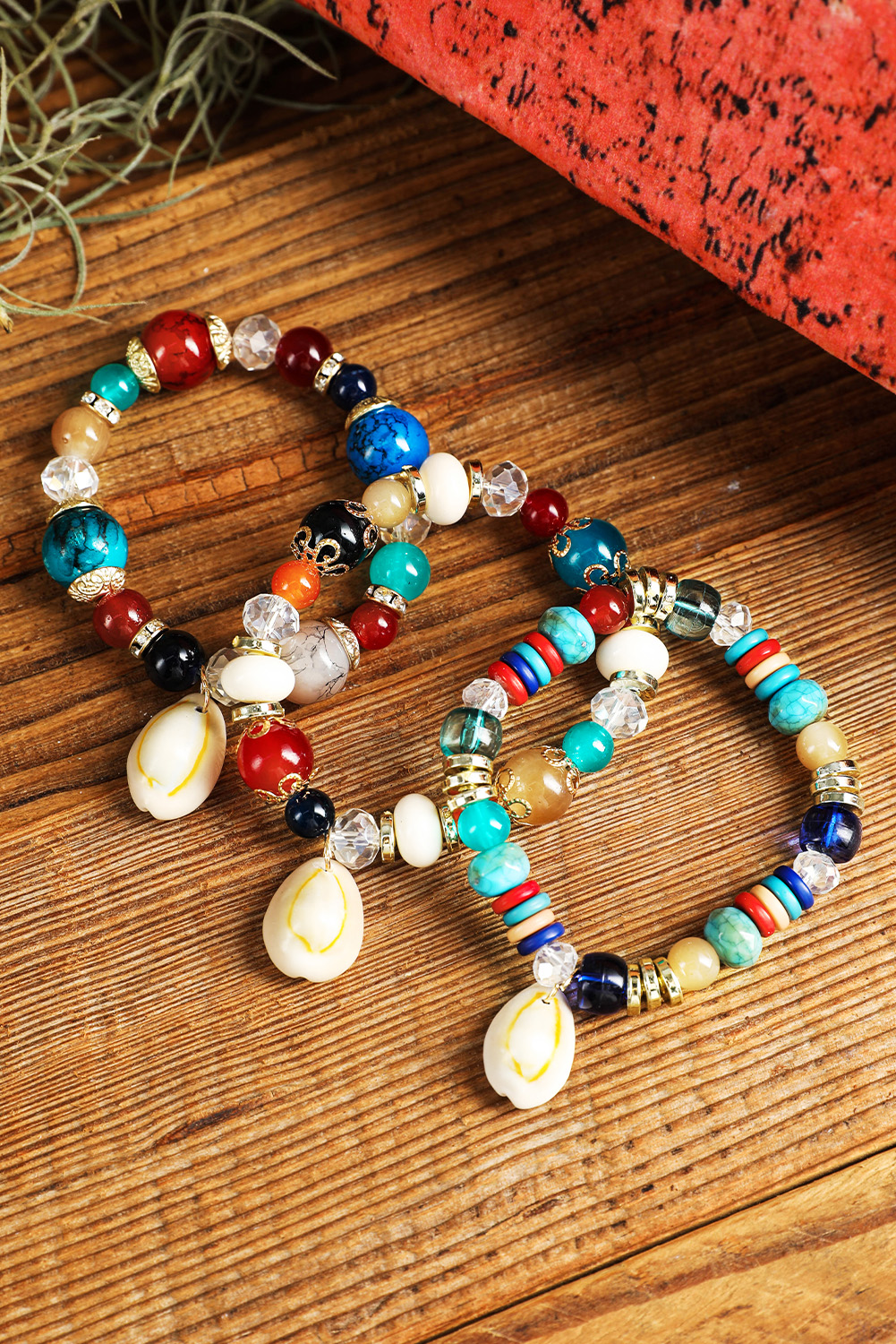 Light Blue Boho Shell Pendant Beaded Layered Bracelet Set