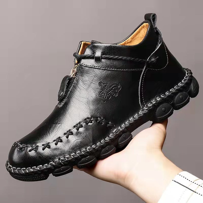 ZITTOR Mens Hand Stitching Non-Slip Soft Sole Genuine Leather Ankle Chukka Boots