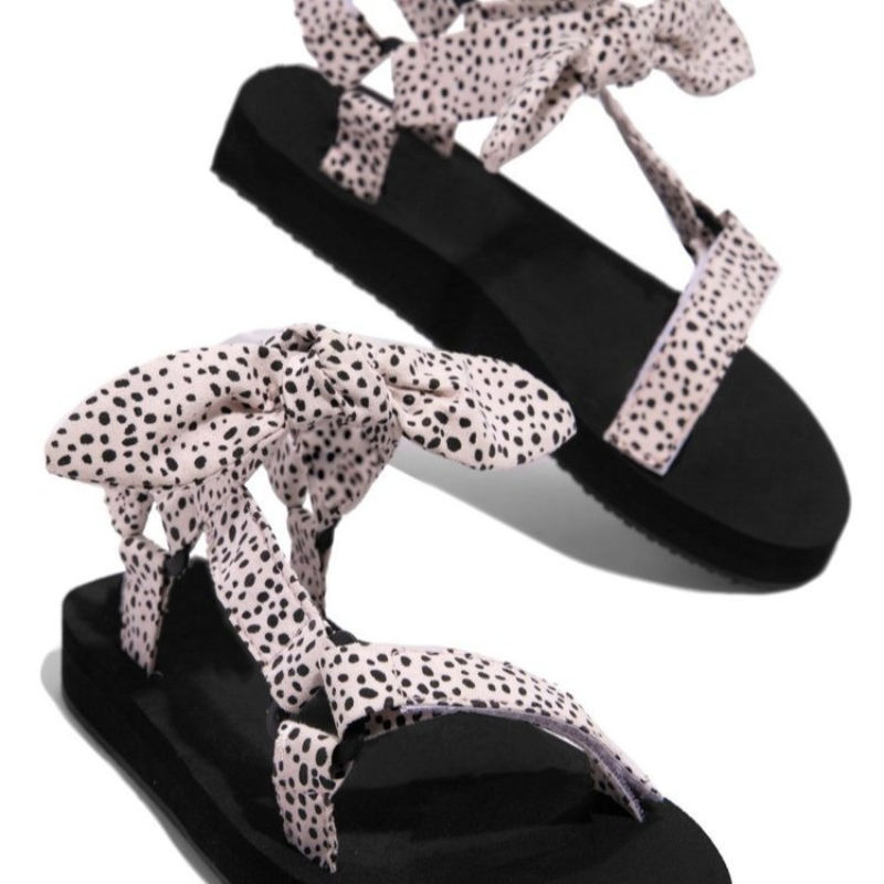 Trendy Bow Beach Design Casual Plaid Open Toe Flat Sandals
