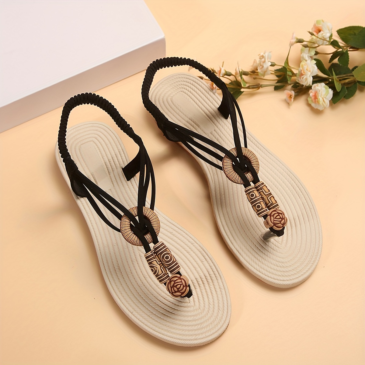 Women's Boho Style Thong Sandals, Casual Lightweight Elastic Band Slip On Shoes, Outdoor Summer Beach Sandals