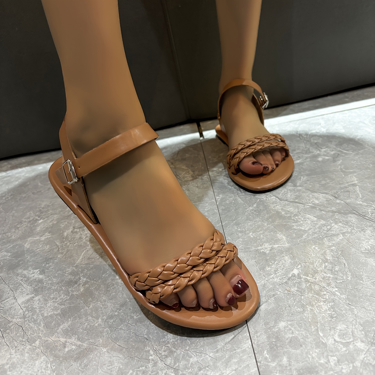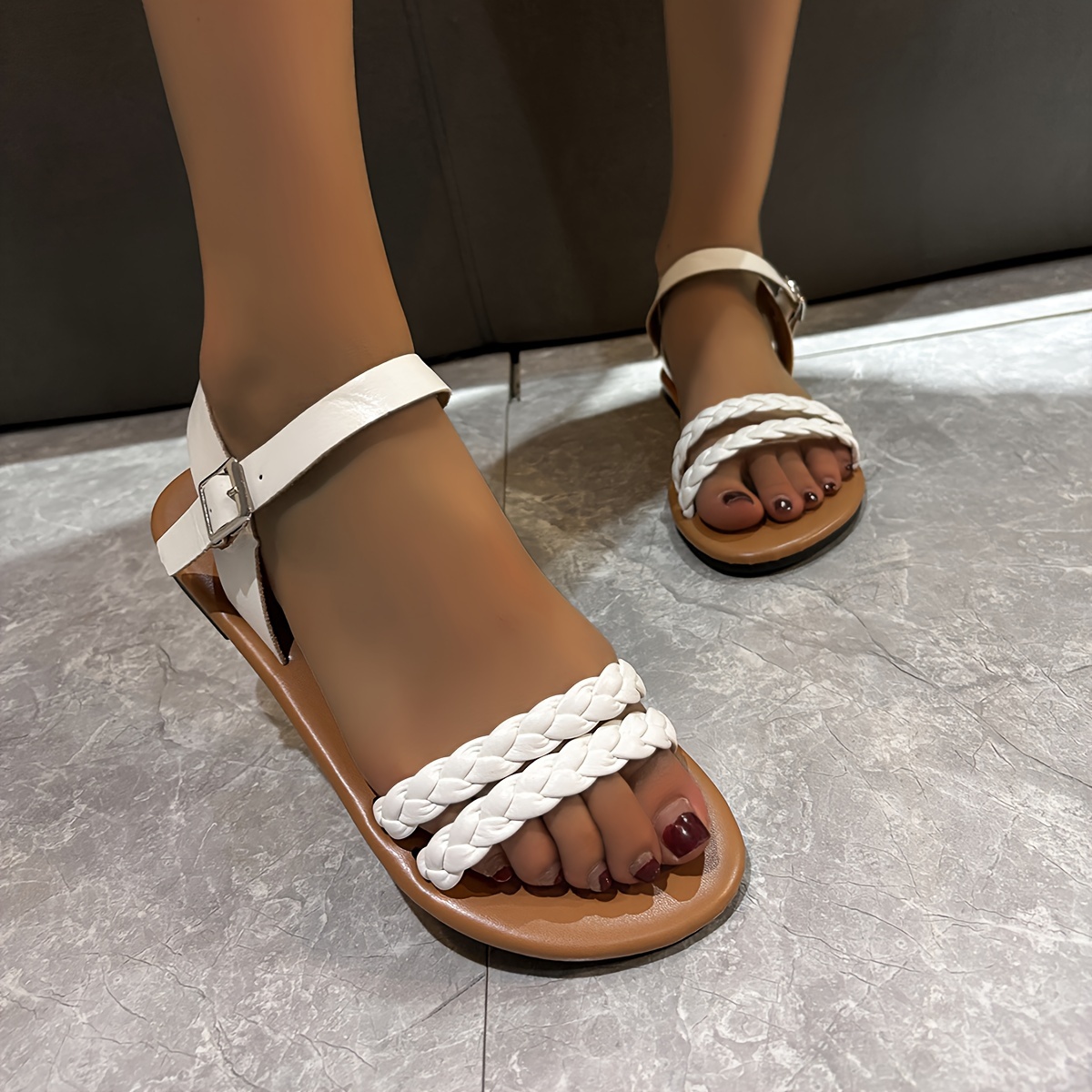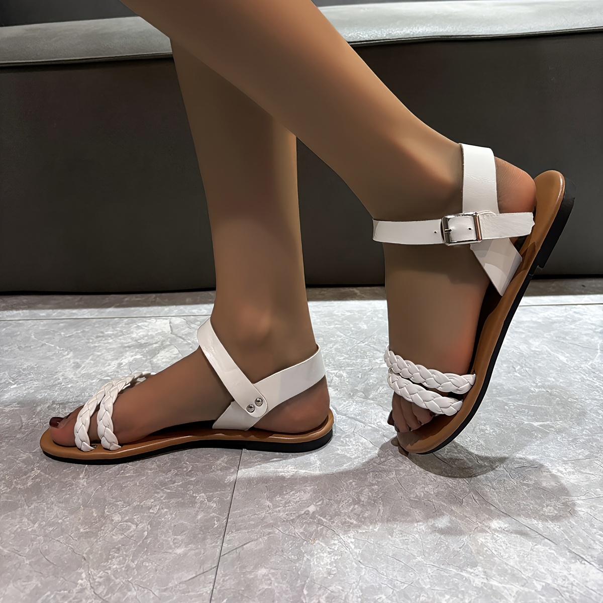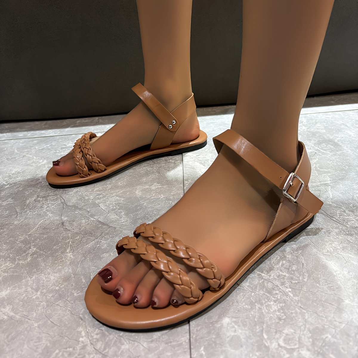 Women's Braided Flat Sandals, Casual Open Toe Summer Shoes, Lightweight Buckle Strap Sandals