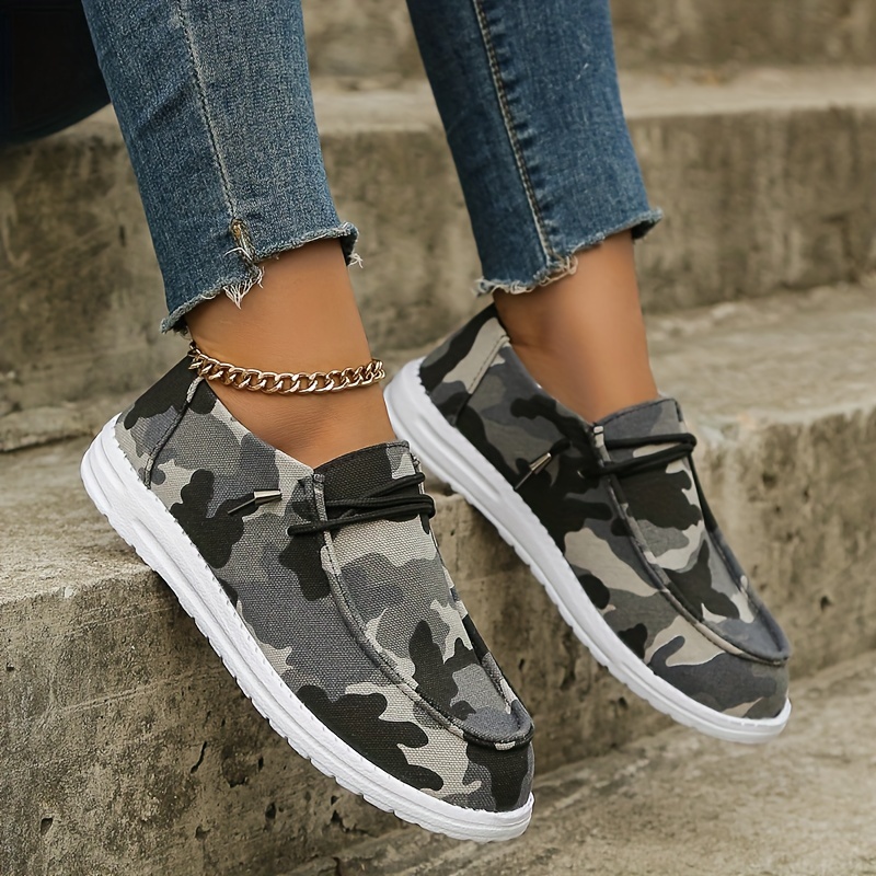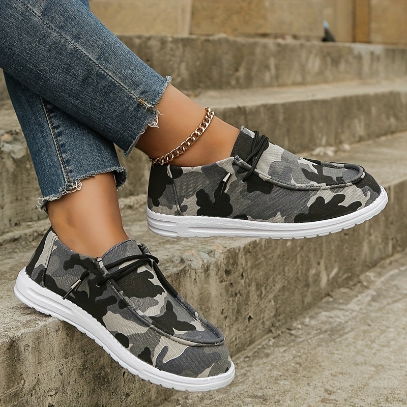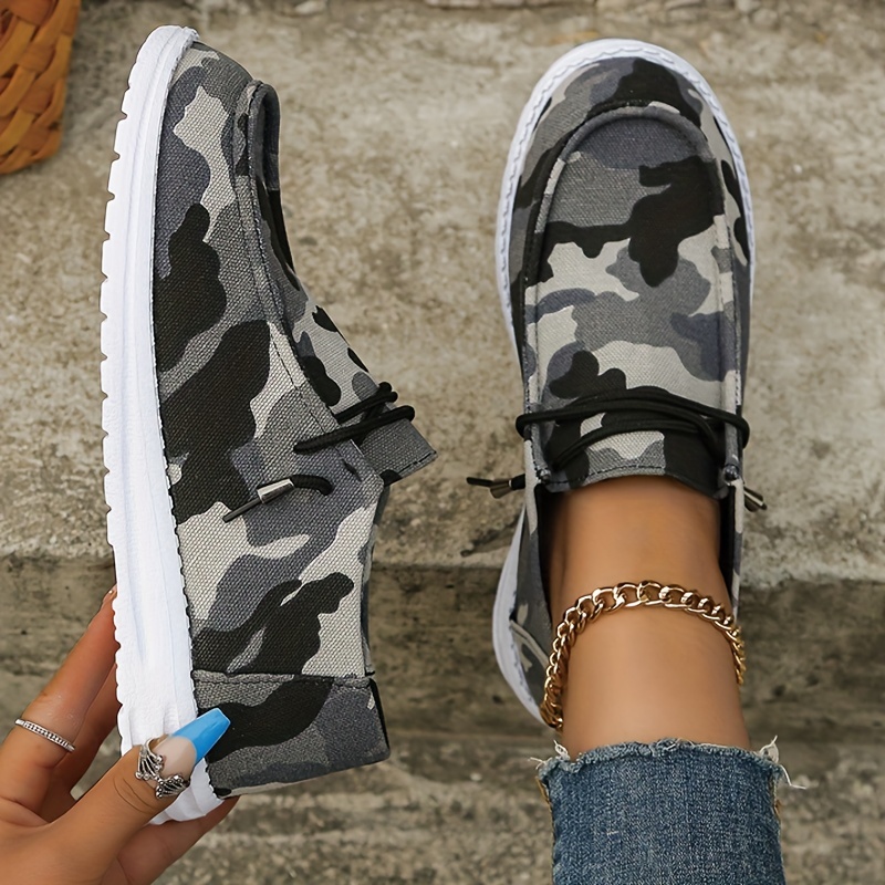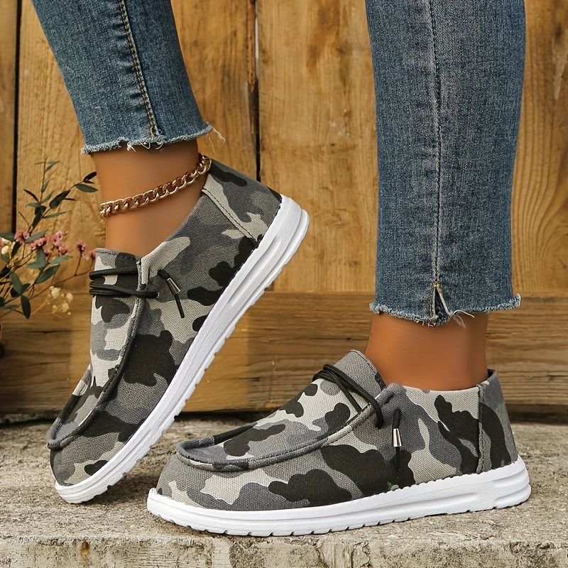 Women's Camo Printed Lace Up Round Toe Fashion Boat Shoes, Lightweight Slip-on Flat Sneakers For Outdoor