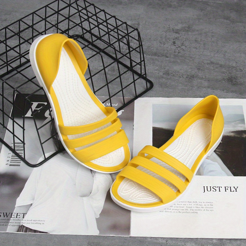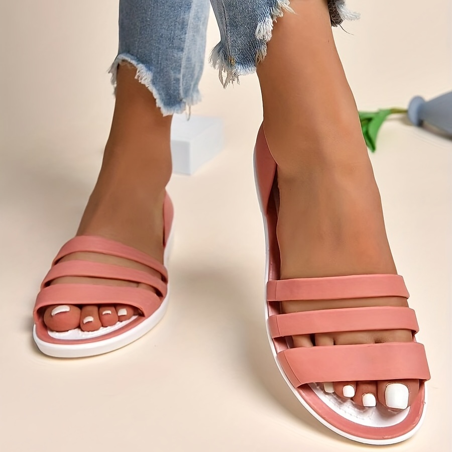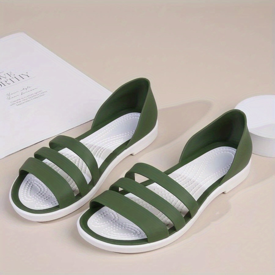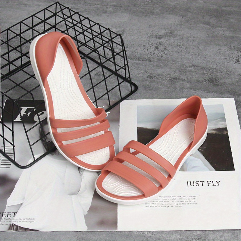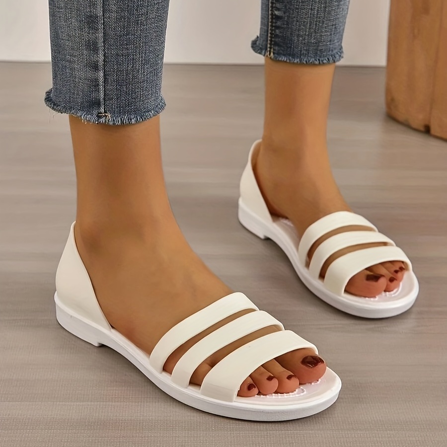 Women's Minimalist Flat Sandals, Solid Color Open Toe Non-slip PVC Soft Sole Slippers, Casual Beach Slides