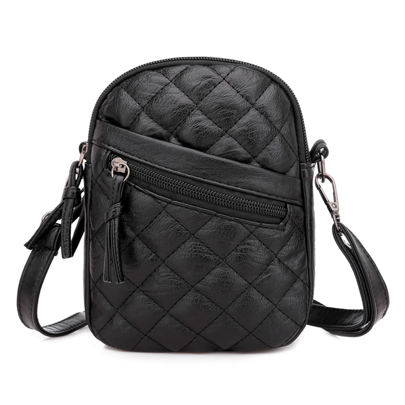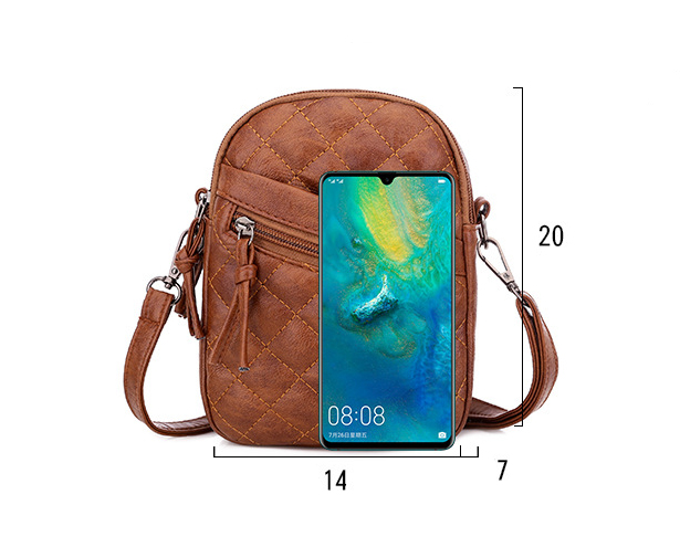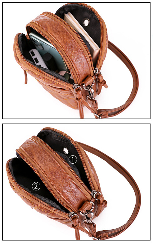 women's soft leather shoulder bag diamond multi-layer retro mobile phone bag