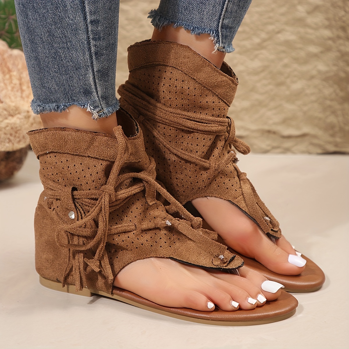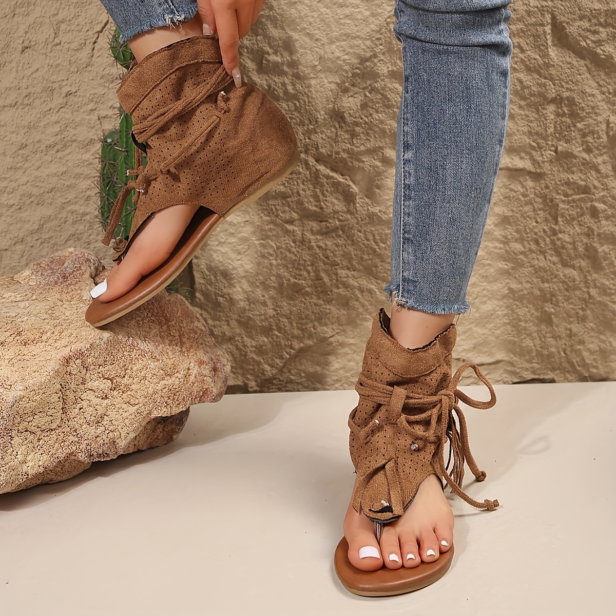 Women's Trendy Flat Sandals, Fashion Tassel Decor Clip Toe Summer Shoes, Women's Comfortable Sandals
