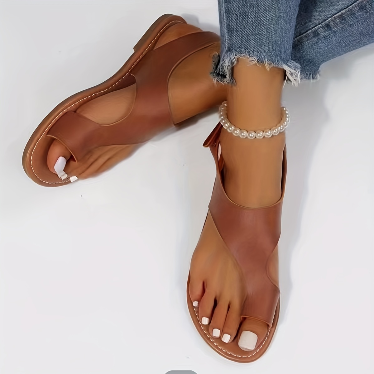 Women's Simple Flat Sandals, Casual Loop Toe Summer Shoes, Lightweight Ankle Strap Sandals