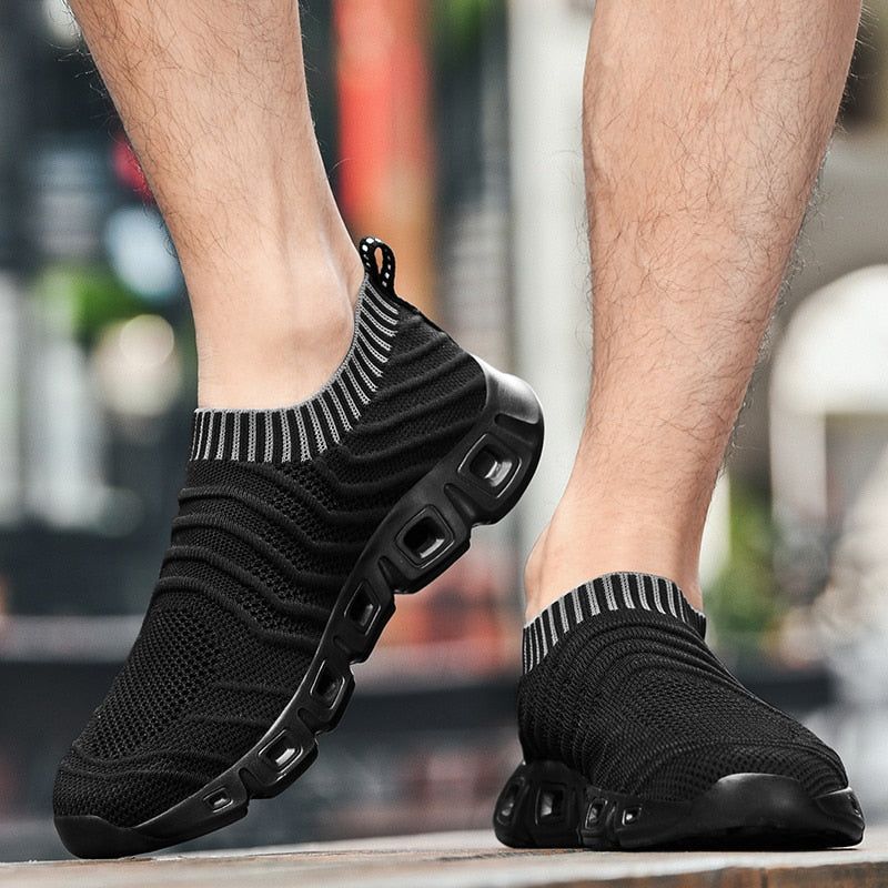 Flying Woven Breathable Running Casual Shoes For Men. Fitness Flats Shoes. Air Cushion Shoes, Outdoor Brand Sports Shoes Platform Sneakers.