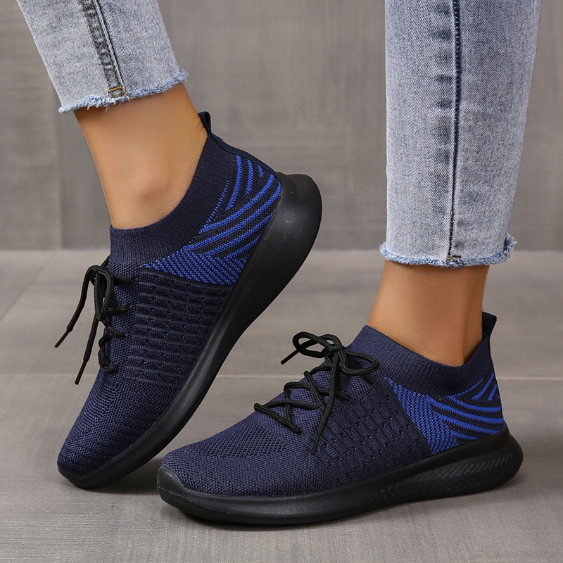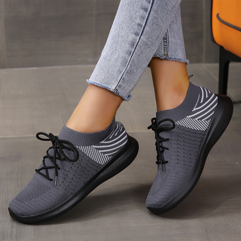 Casual Solid Platform Lace-Up Flyknit Slip-on Sneakers